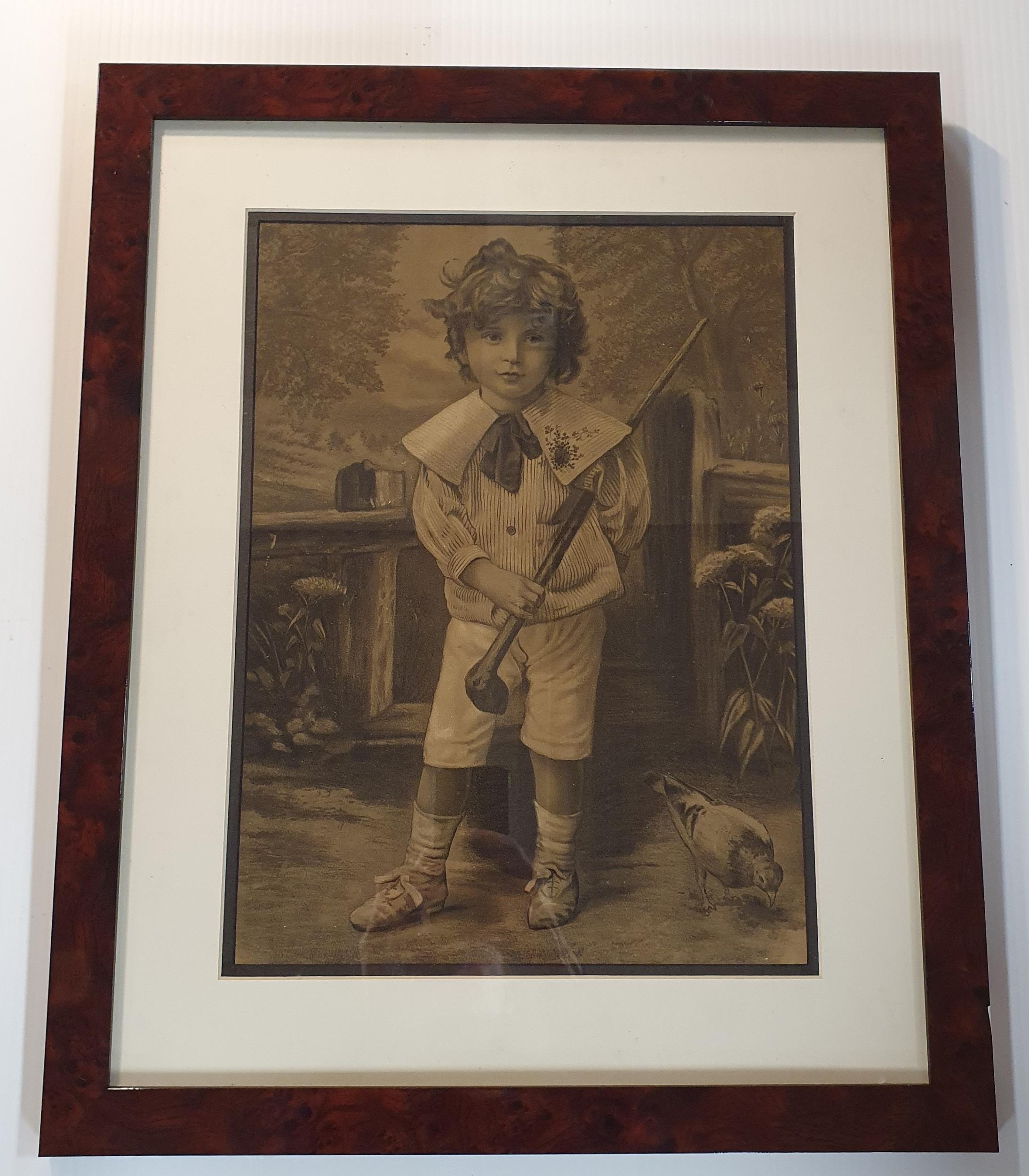 A 19th Century Lithograph of a young boy, no apparent signat...