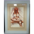 Byron Howard, signed mixed media of a girl crossed-legged, signed bottom left, 51 x 33cm.