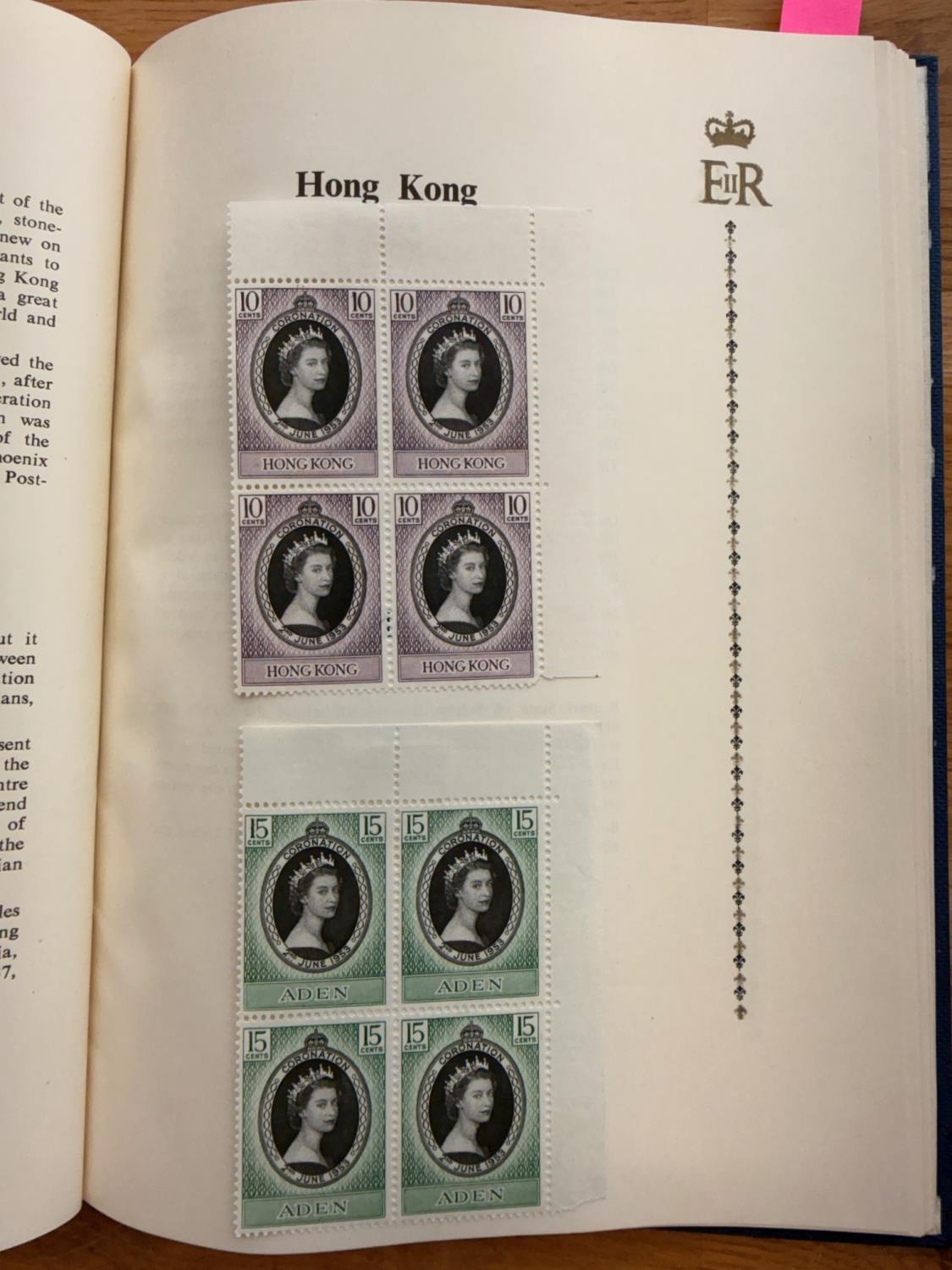 OMNIBUS 1953 Coronation set in blocks of 4 in special album mint, GB set singles. Cat about £750