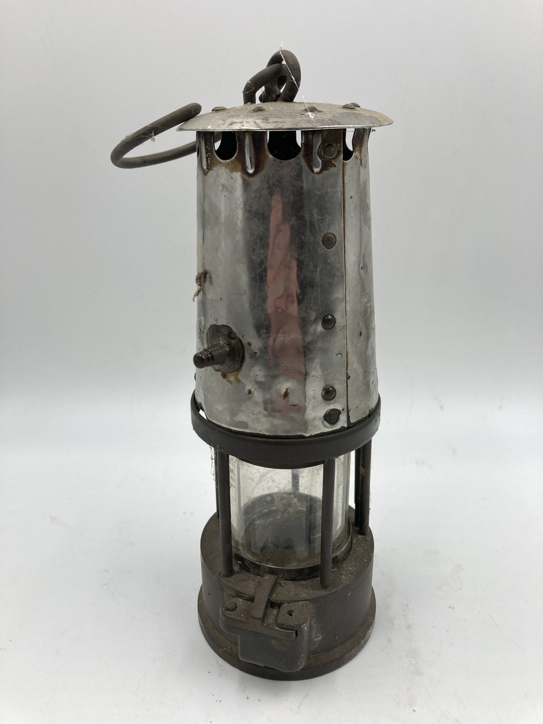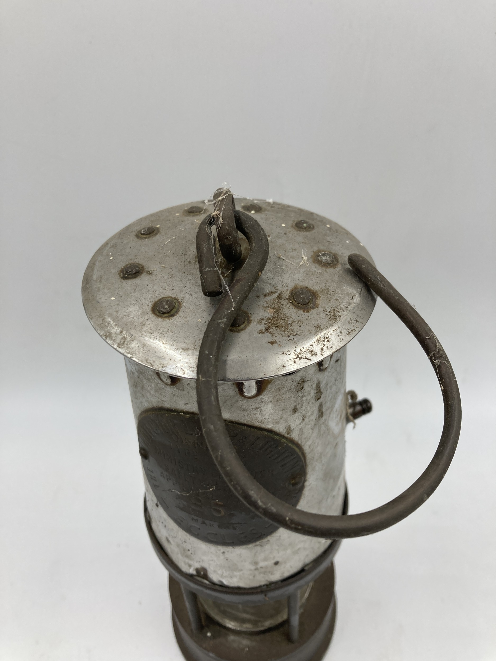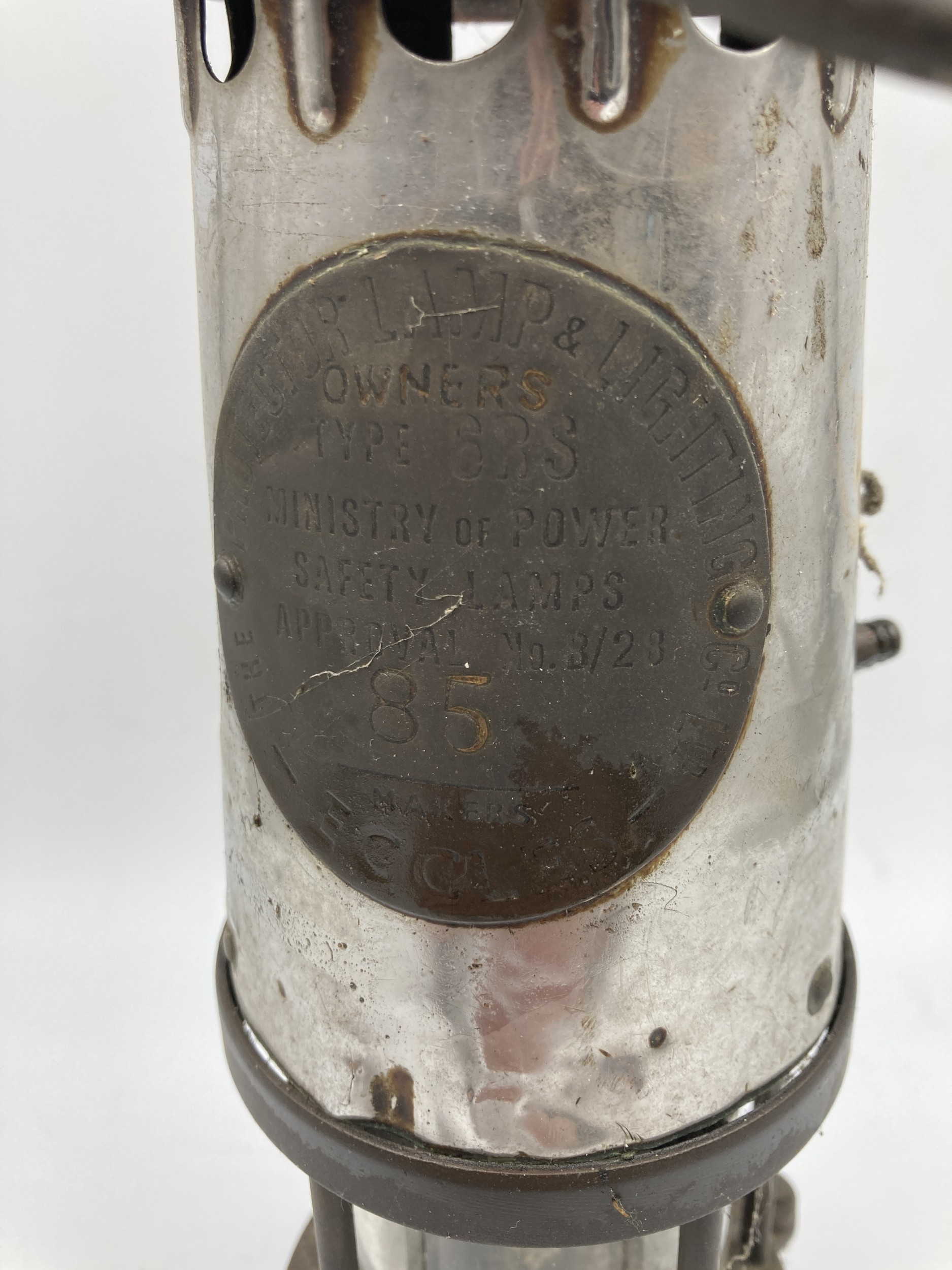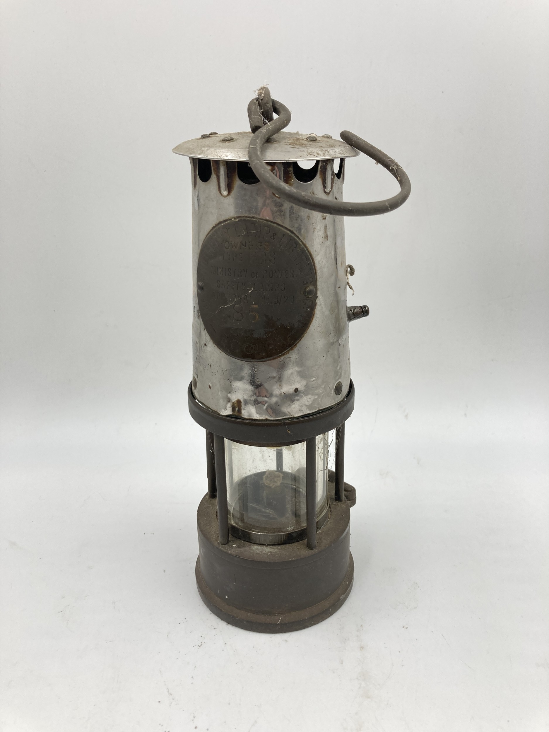 A mid 20th century Protector Lamp & Lighting Co. Ltd. Type 6RS brass and steel miner's safety lamp, bearing Ministry of Power plaque stamped 85 - approx. 25cm high