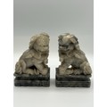 Pair of Mid Century Chinese hand carved soapstone foo dogs/g...