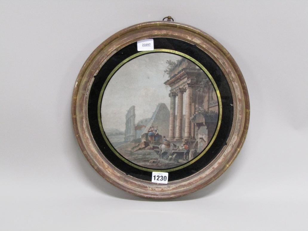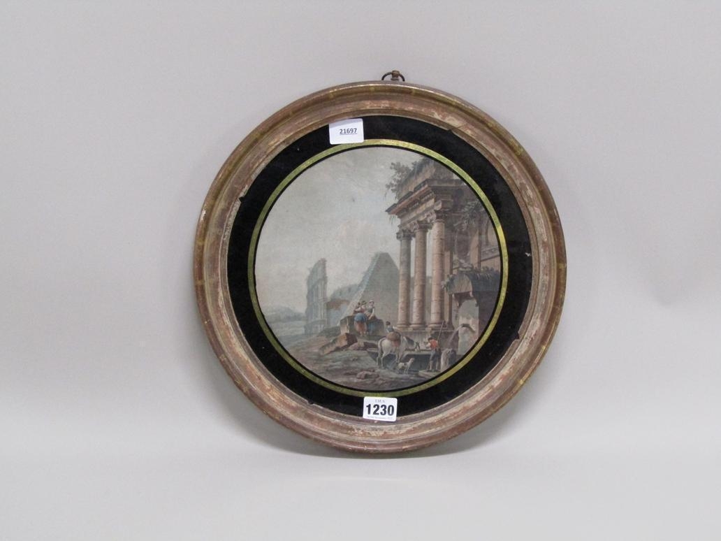 UNSIGNED, 19c ITALIAN SCENE FRAMED PRINT IN A CIRCULAR FRAME