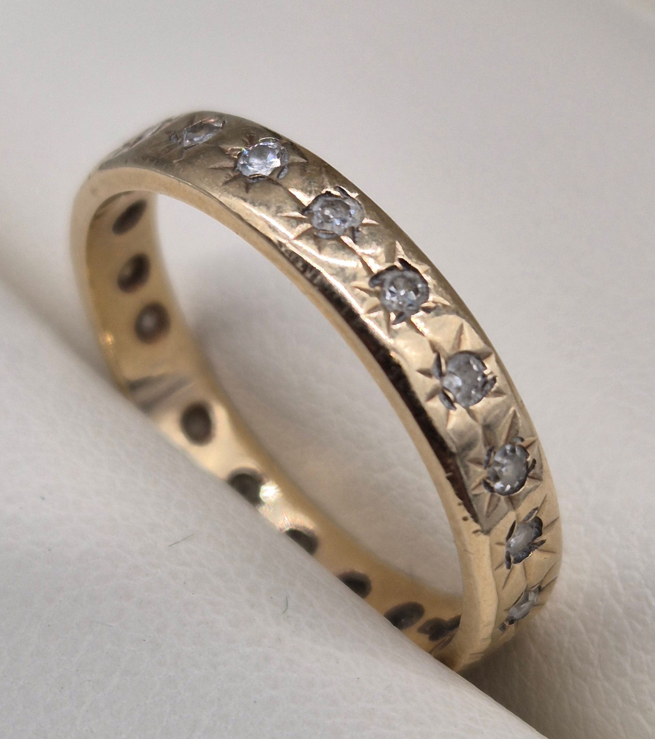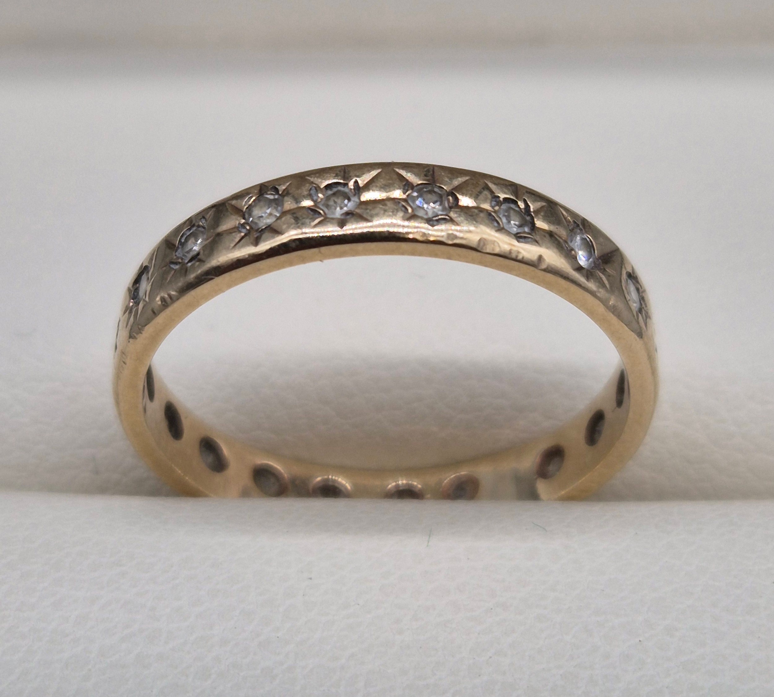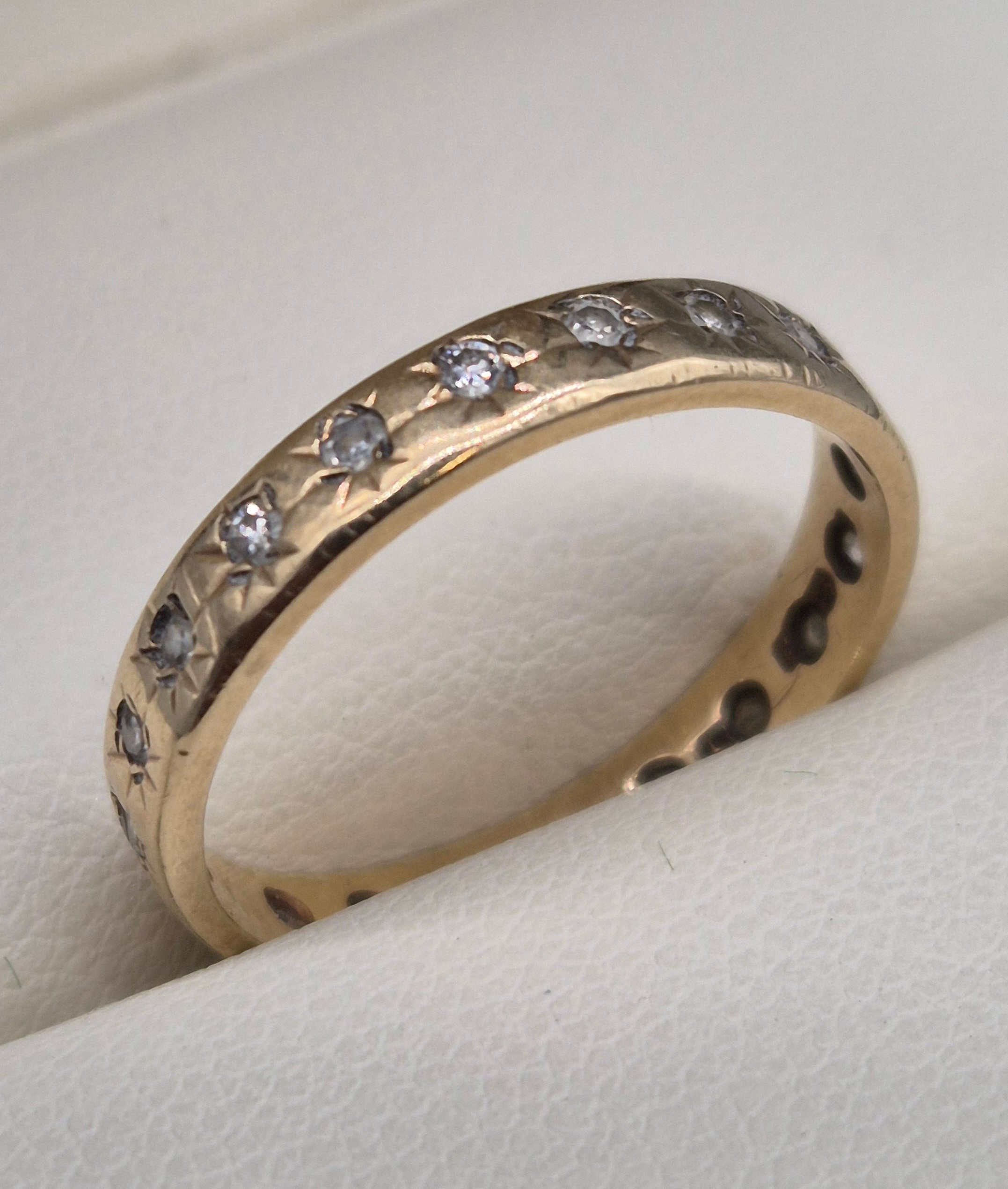 9ct yellow gold and diamond stone band ring. 2grams. Ring size N 1/2.
