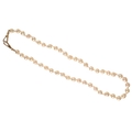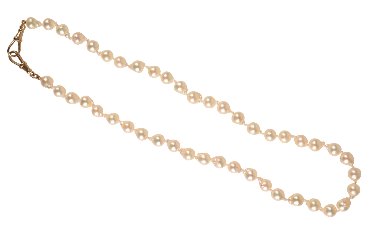 A BAROQUE PEARL NECKLACE, a single strand of cultured baroque pearls with a 9ct clasp, 50cm long