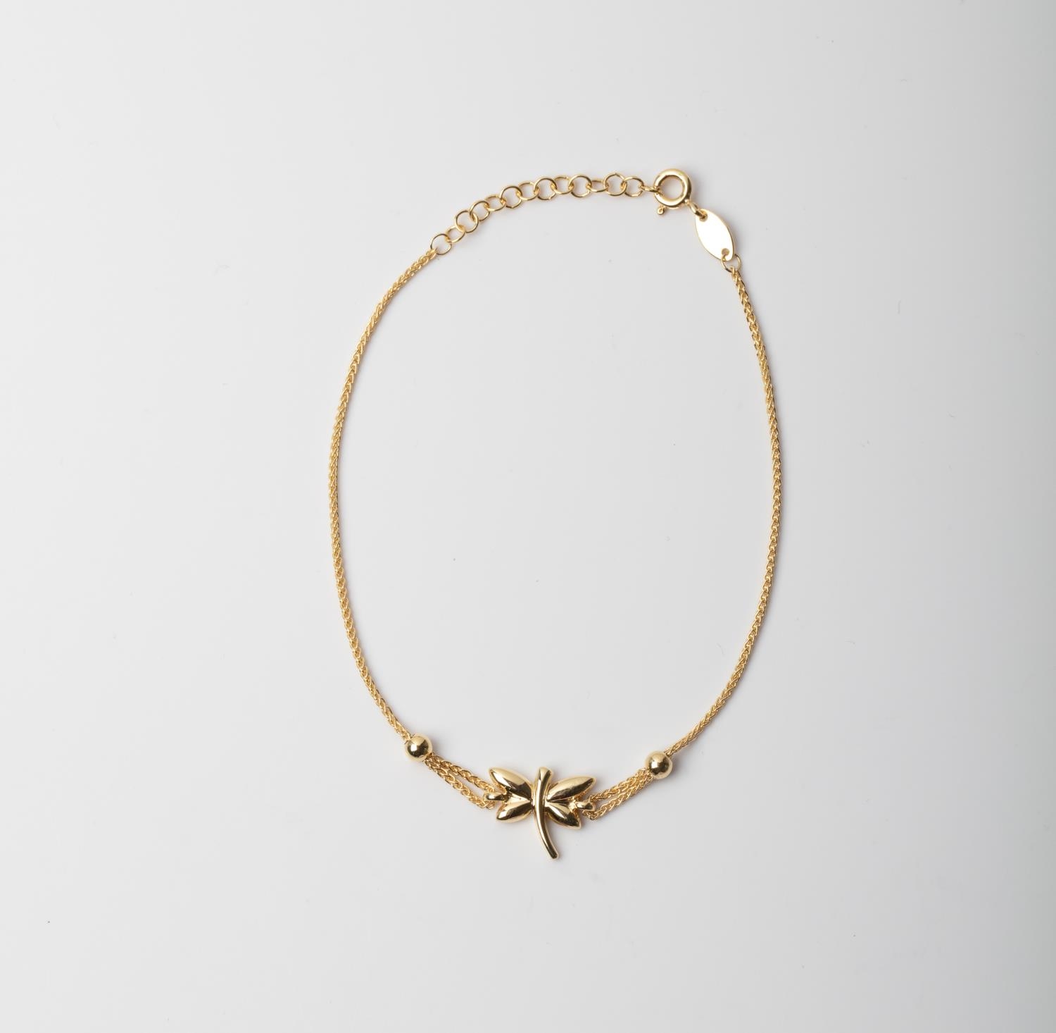 A 14CT AND SILVER BONDED DRAGONFLY BRACELET A 22cm long dragonfly bracelet crafted in 1/10 14ct gold and Sterling Silver bonded together weighing 2 grams.