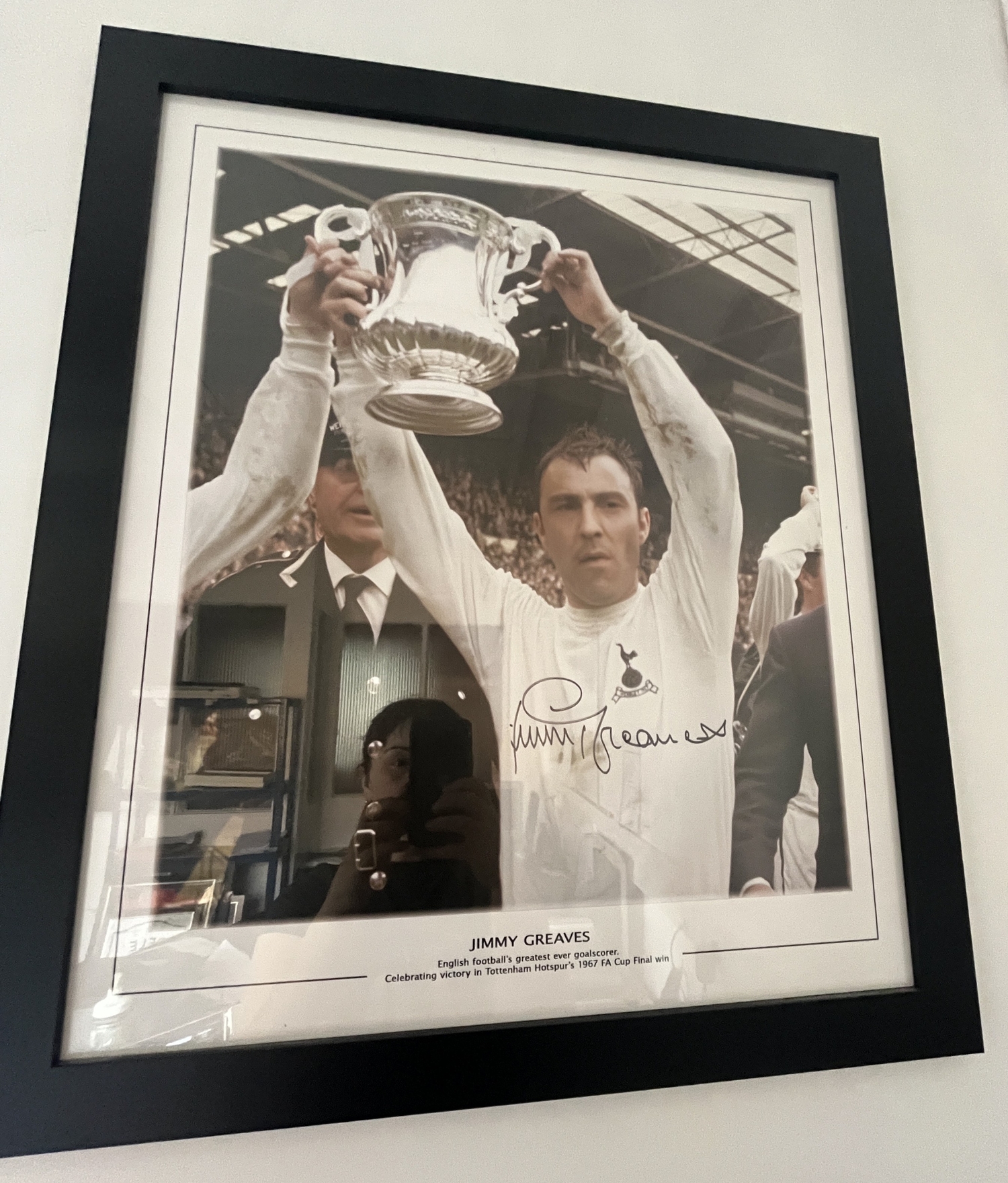 Jimmy Greaves Tottenham 1967 FA Cup Final signed print mounted with black frame and Perspex frontage, piece measures 27x23 inches.