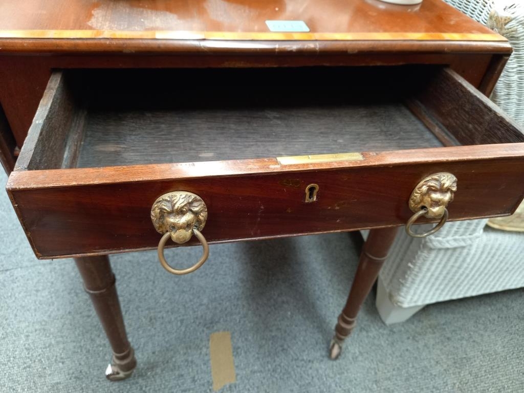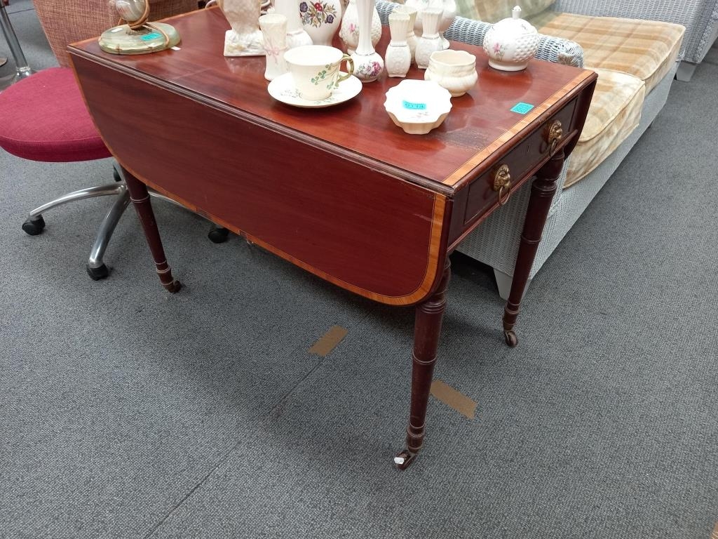 Regency Mahogany Pembroke Table with Satinwood Crossbanded Top over 4 Turned Legs