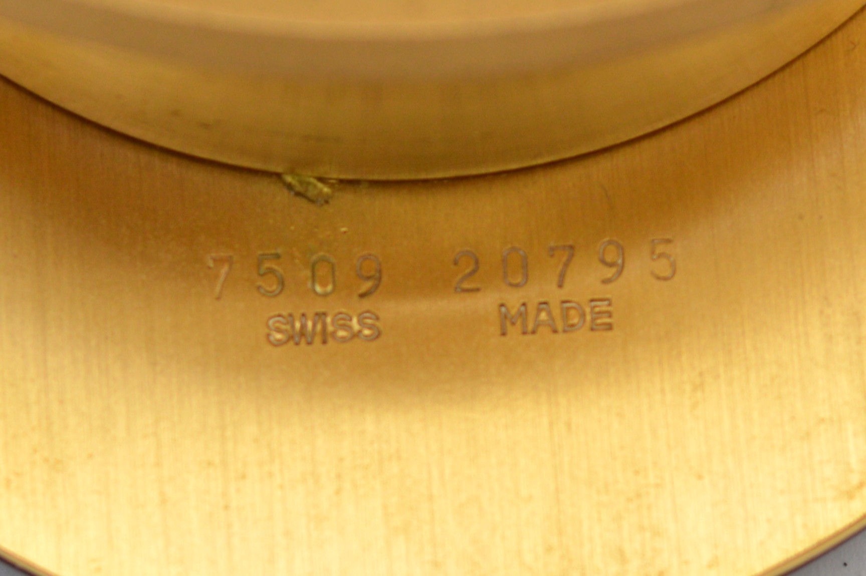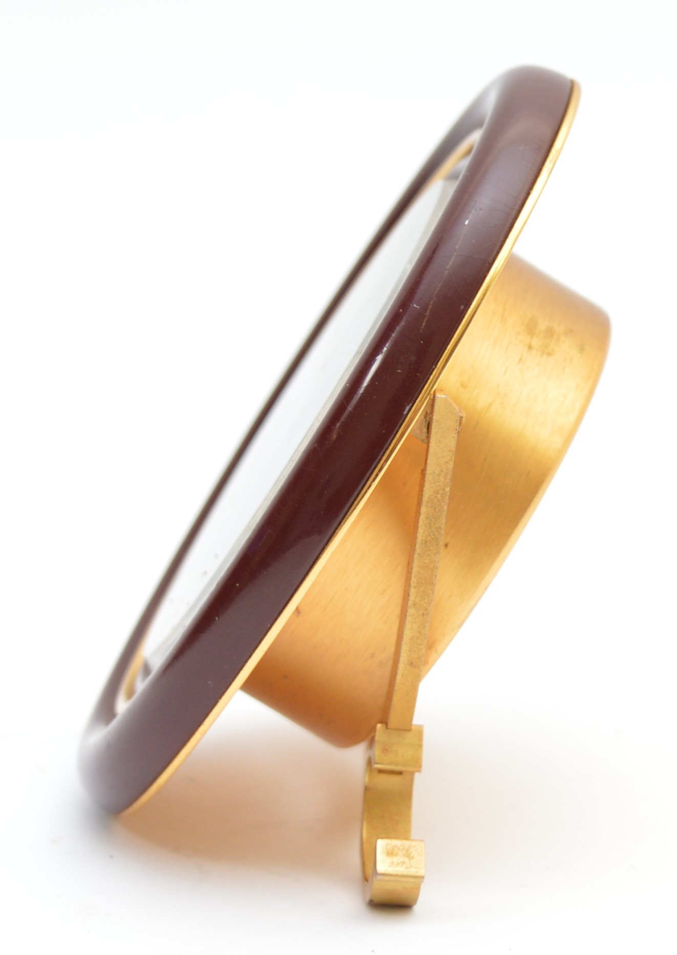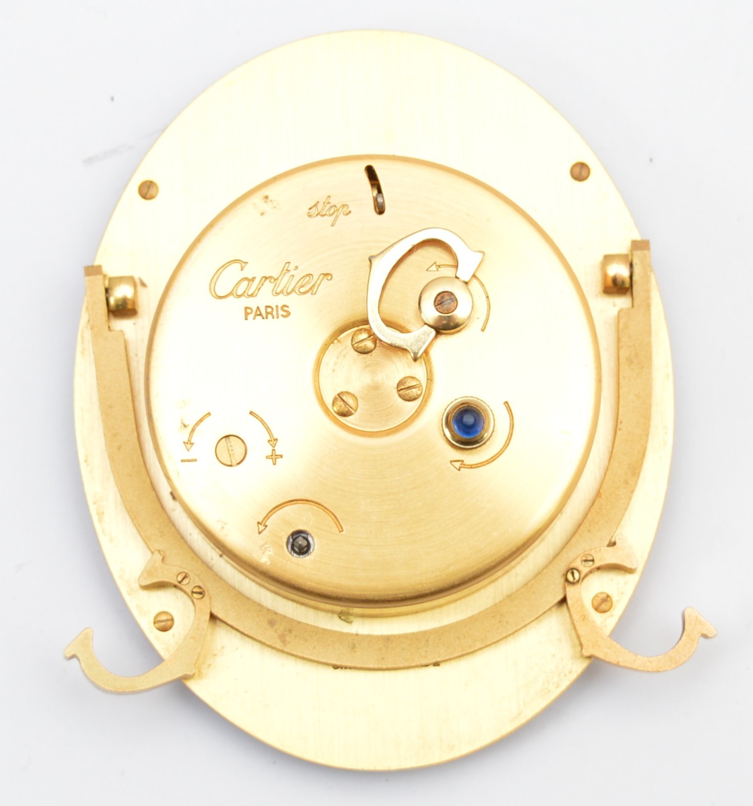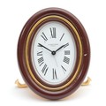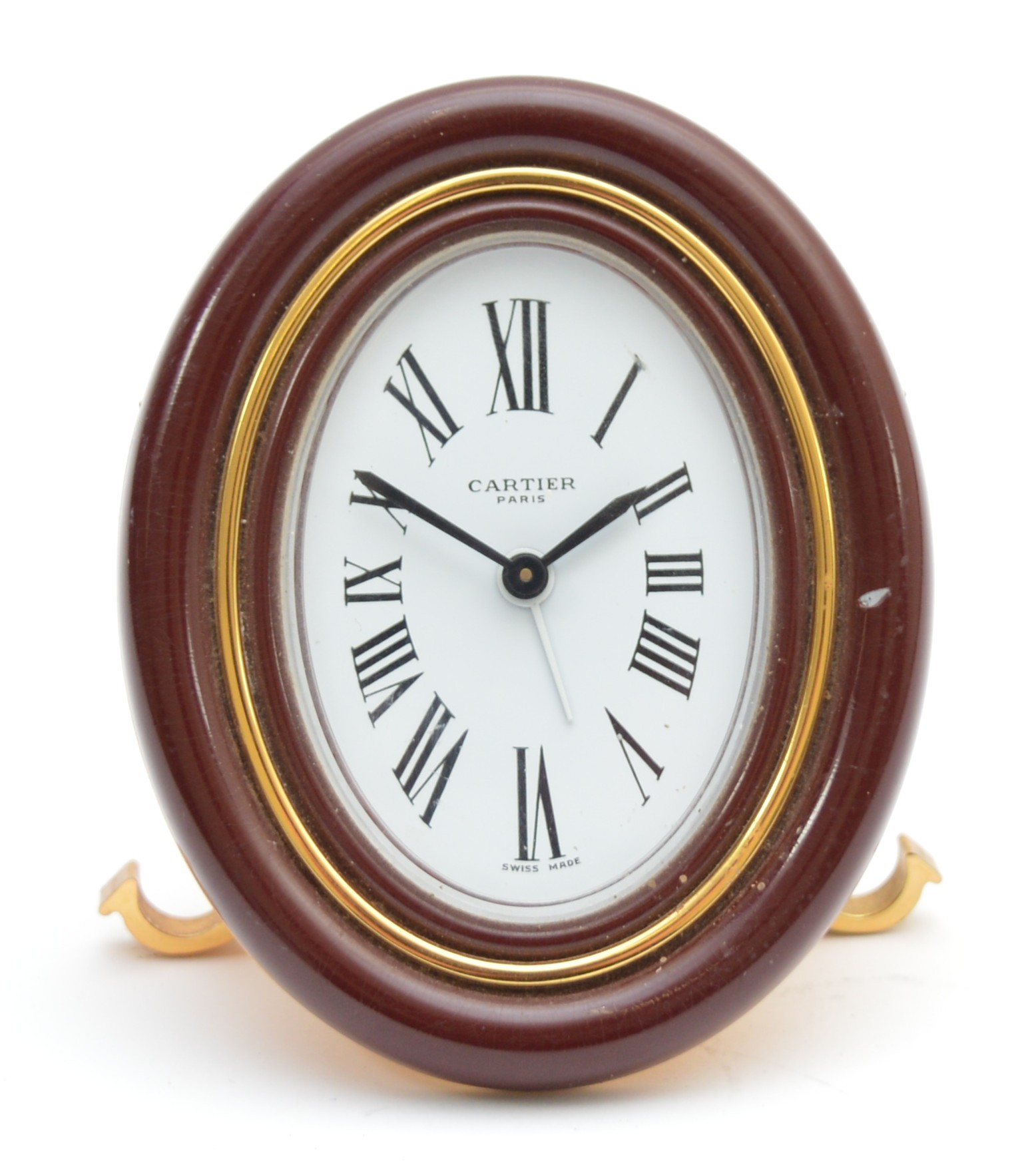 Cartier, an oval brass and brown resin alarm clock, serial number 7509 20795, 9cm.
