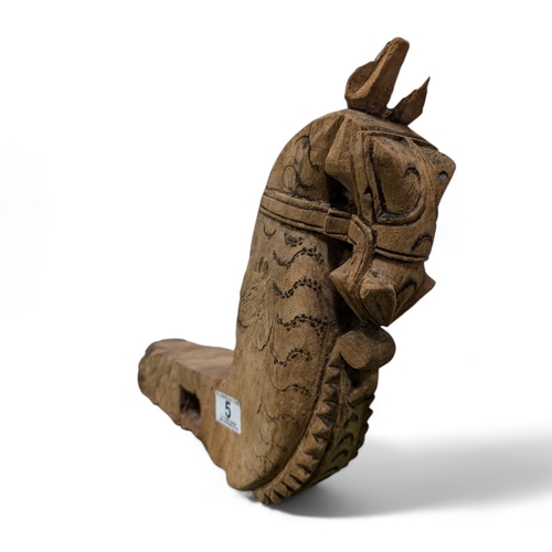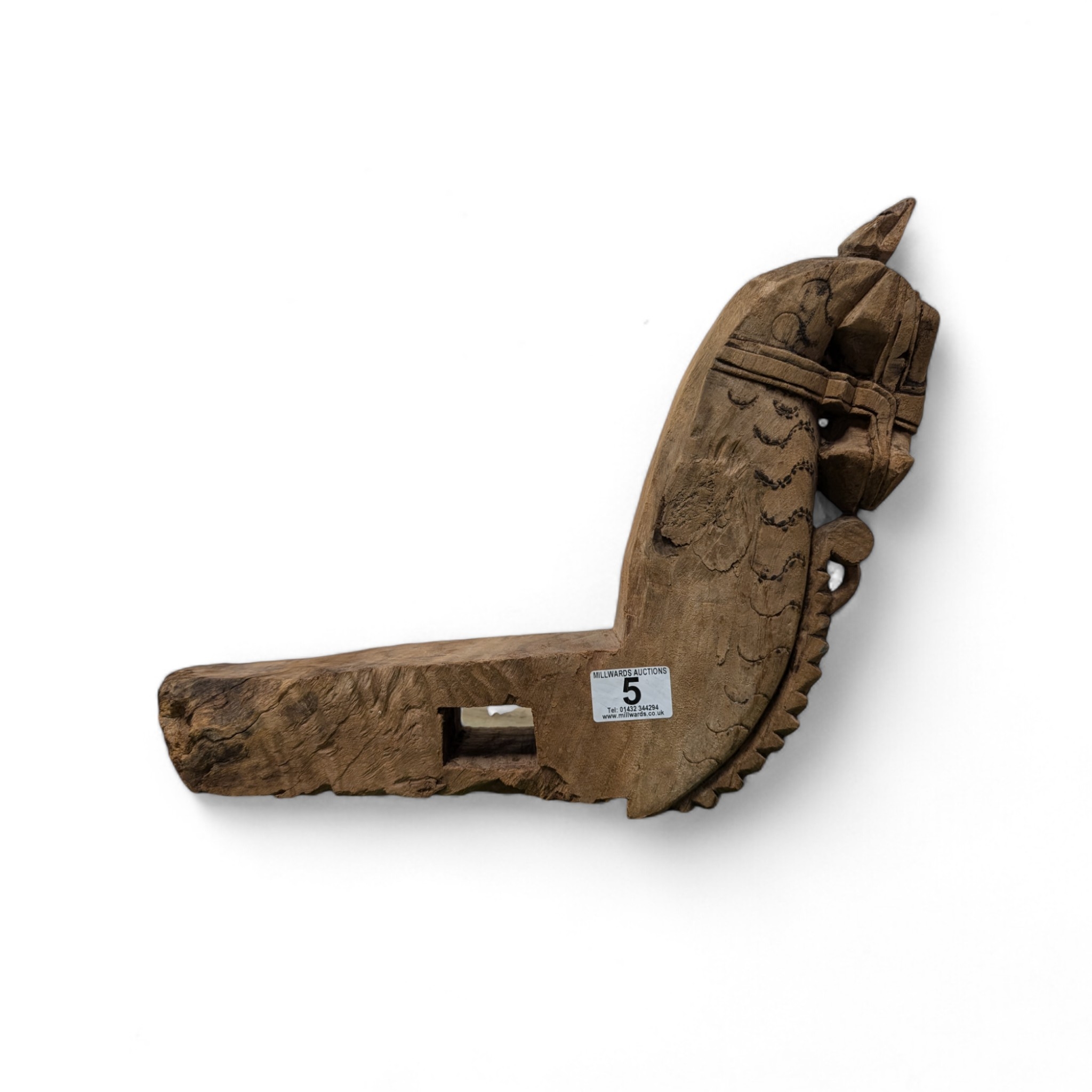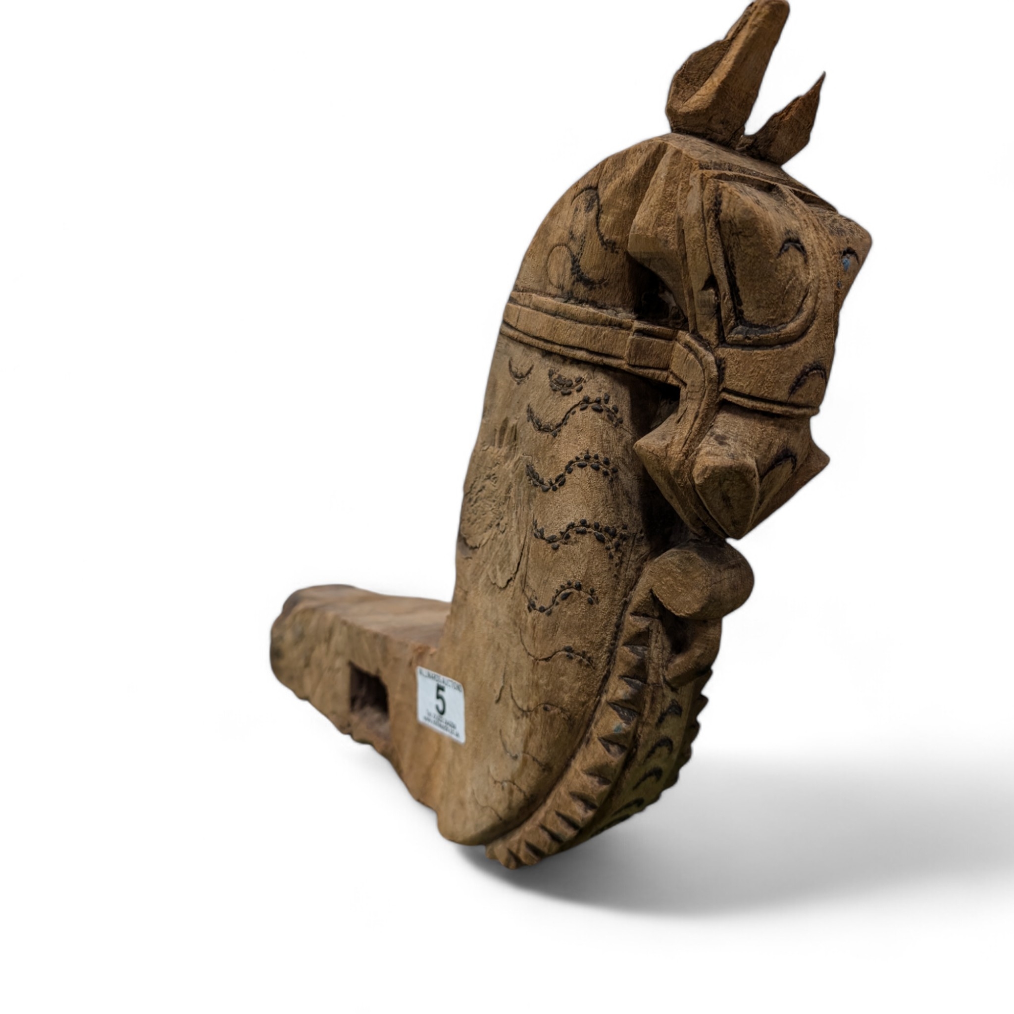 Antique 19th century Indian carved hardwood horse head originally from a doorway.