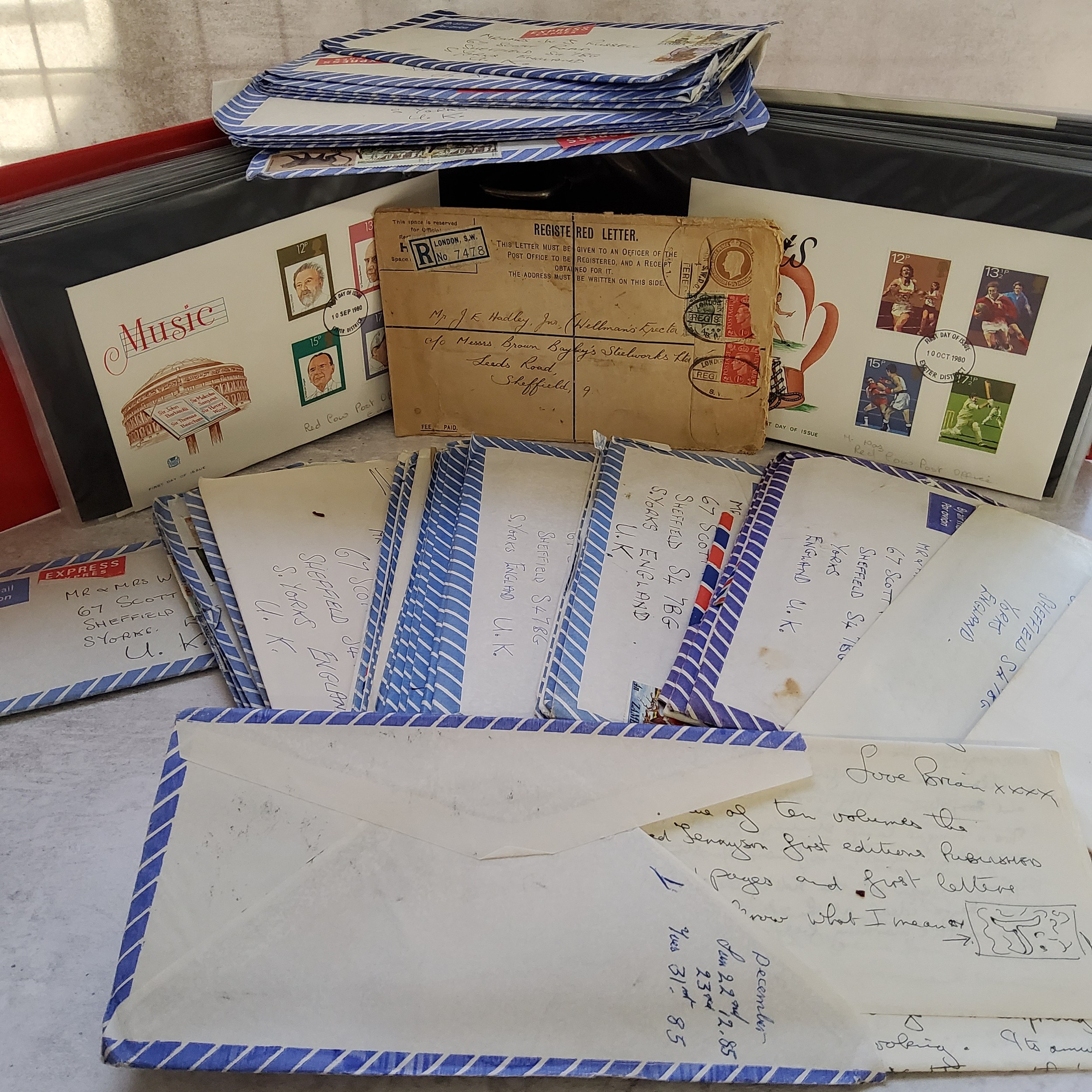 Philately - Post Office approx. forty FDC's 1977 onwards inc. 1829 Rainhills Trials with Railway Letter Service Stamp and cachet, Royal Mail Royal Wedding 1981 Exeter Stamp Exhibition first day cover with the Exeter postmark, another St. Pauls Cathedral mainly Red Cow Exeter postmarks; Jersey Birthplace of the Pillar Box, Isle of Man Millenium of Tynwald; Royal Mail Mint Stamp Packs including Famous Trains, Submarines & The Duke of Edinburgh's Award; a quantity of franked envelopes mainly from Zambia 1980s