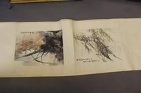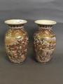 A pair of Japanese Satsuma vases with decorative panels depicting children playing by a river bank, 9½' x high (repaired)
