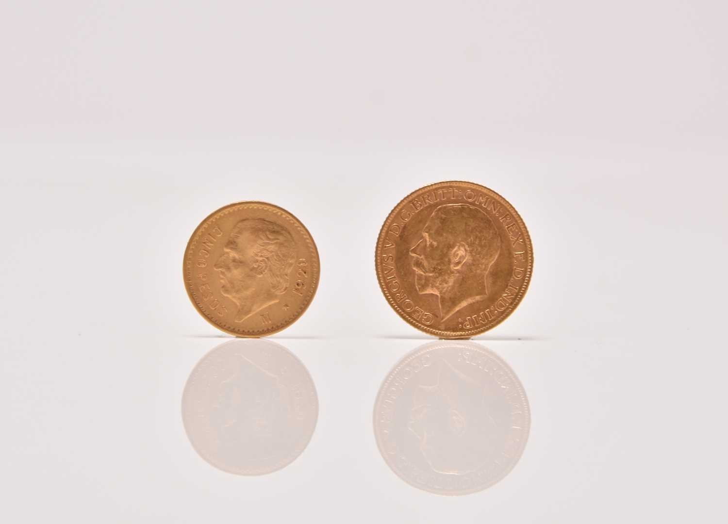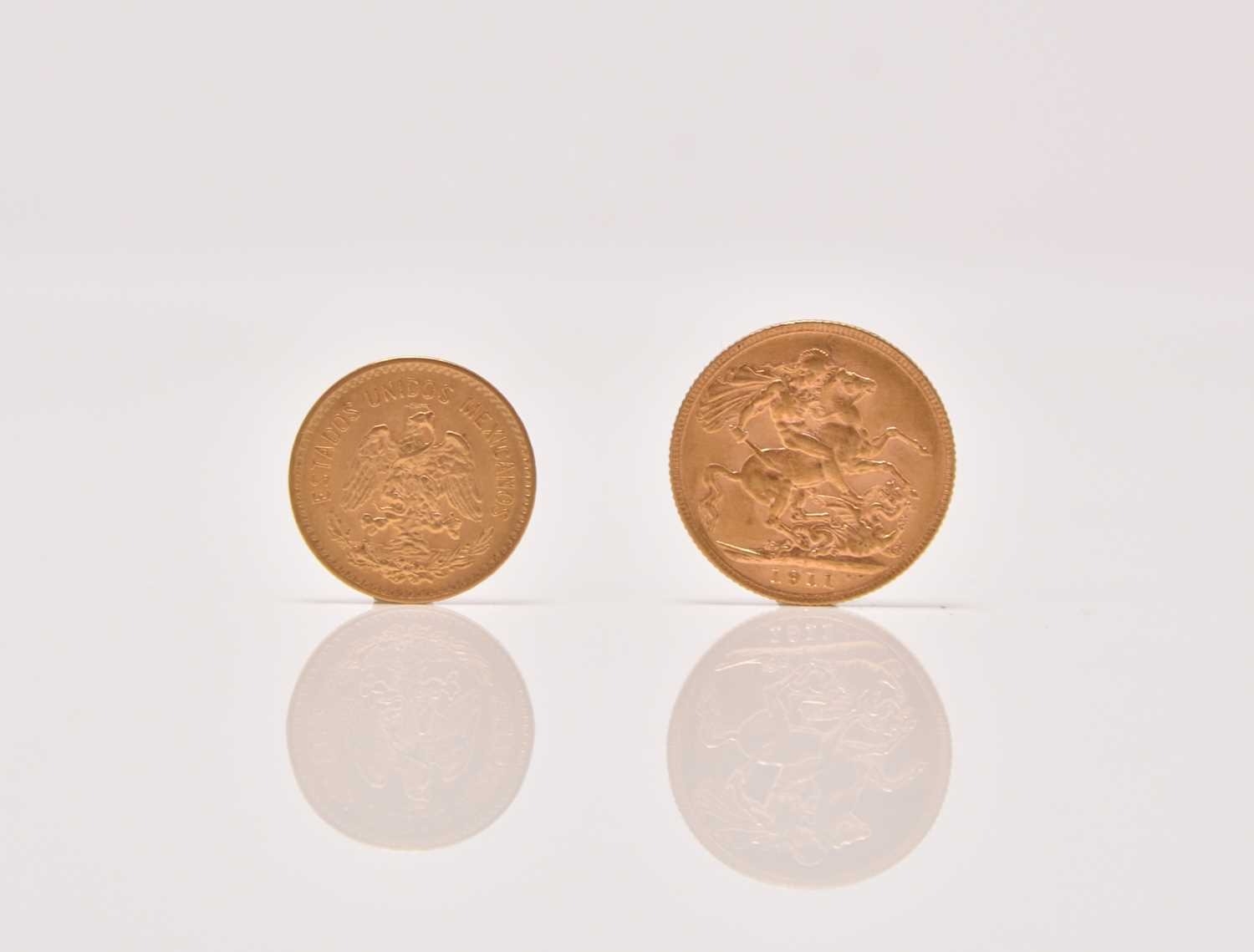 A George V sovereign, dated 1911, together with Mexico five pesos, dated 1920 (2)