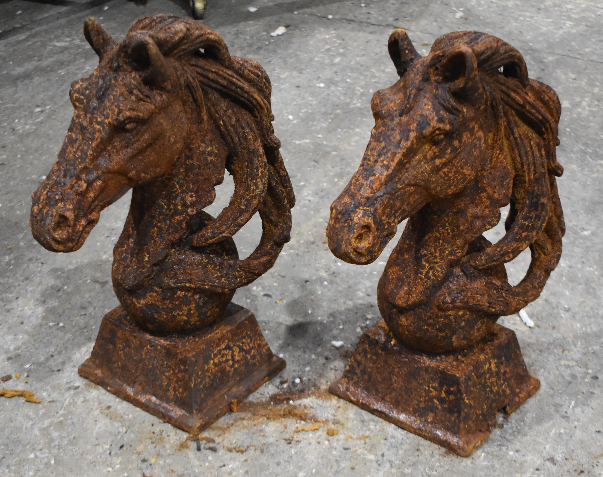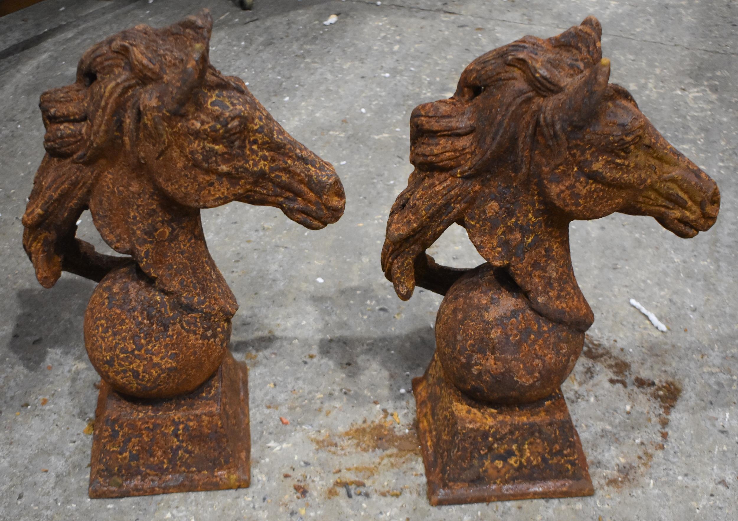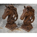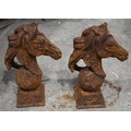 A pair of cast iron Horse Head garden features 45cm