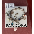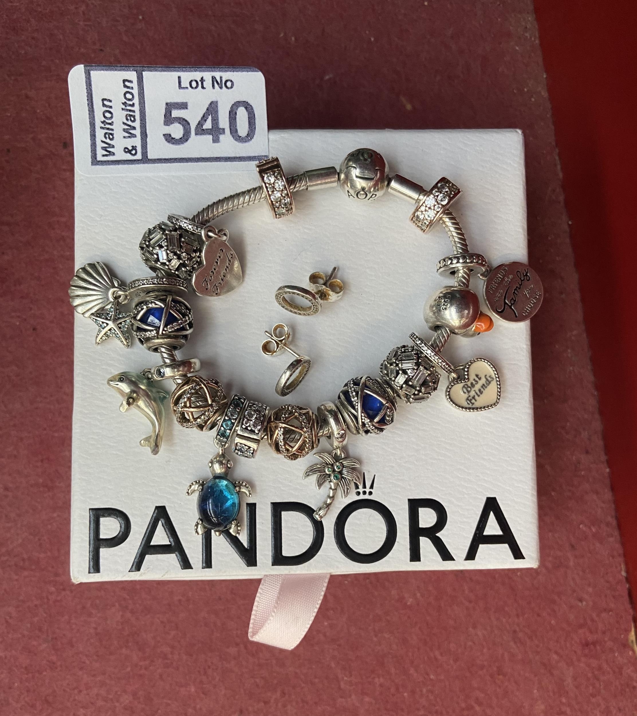 Pandora bracelet with several charms and earrings