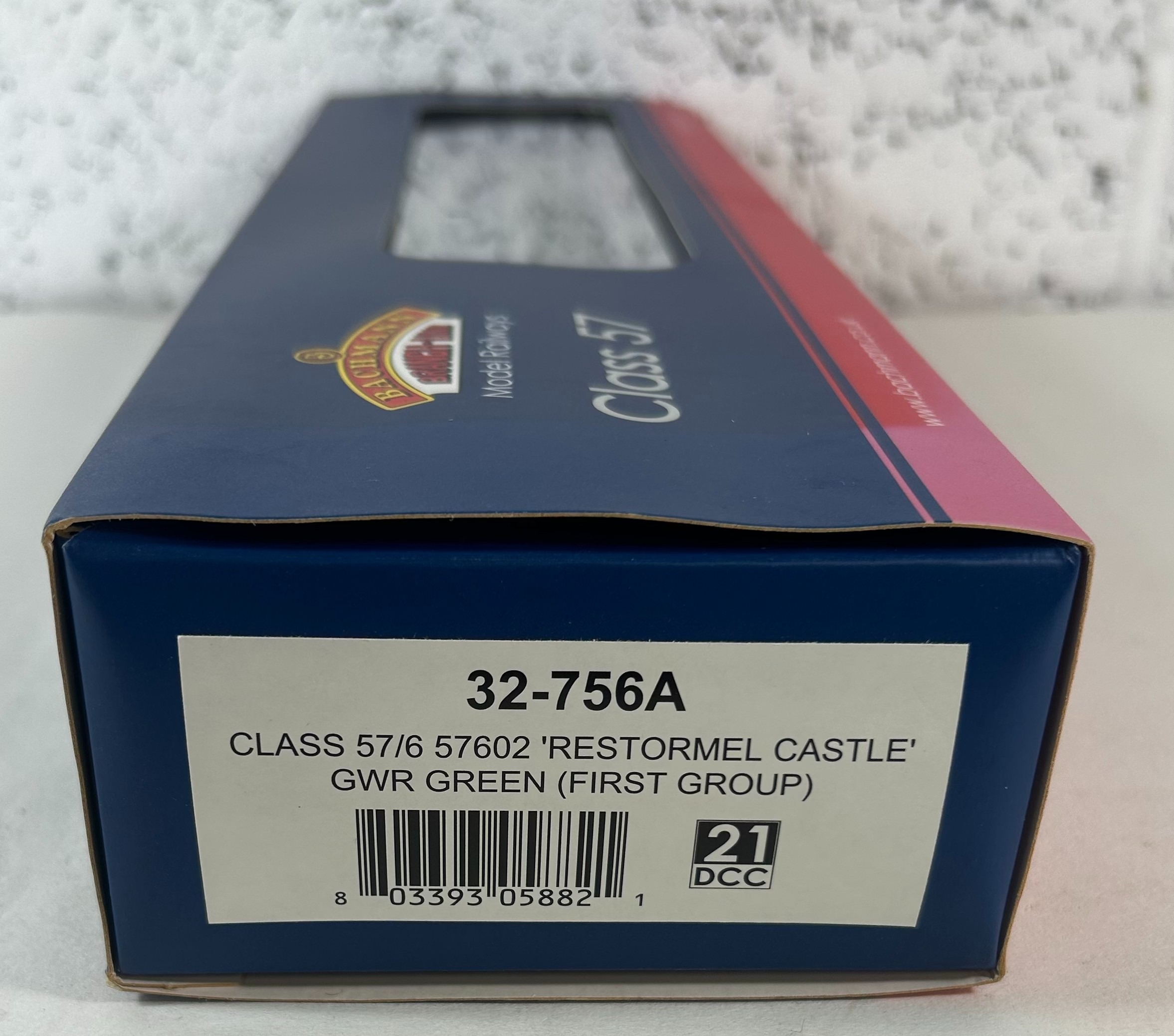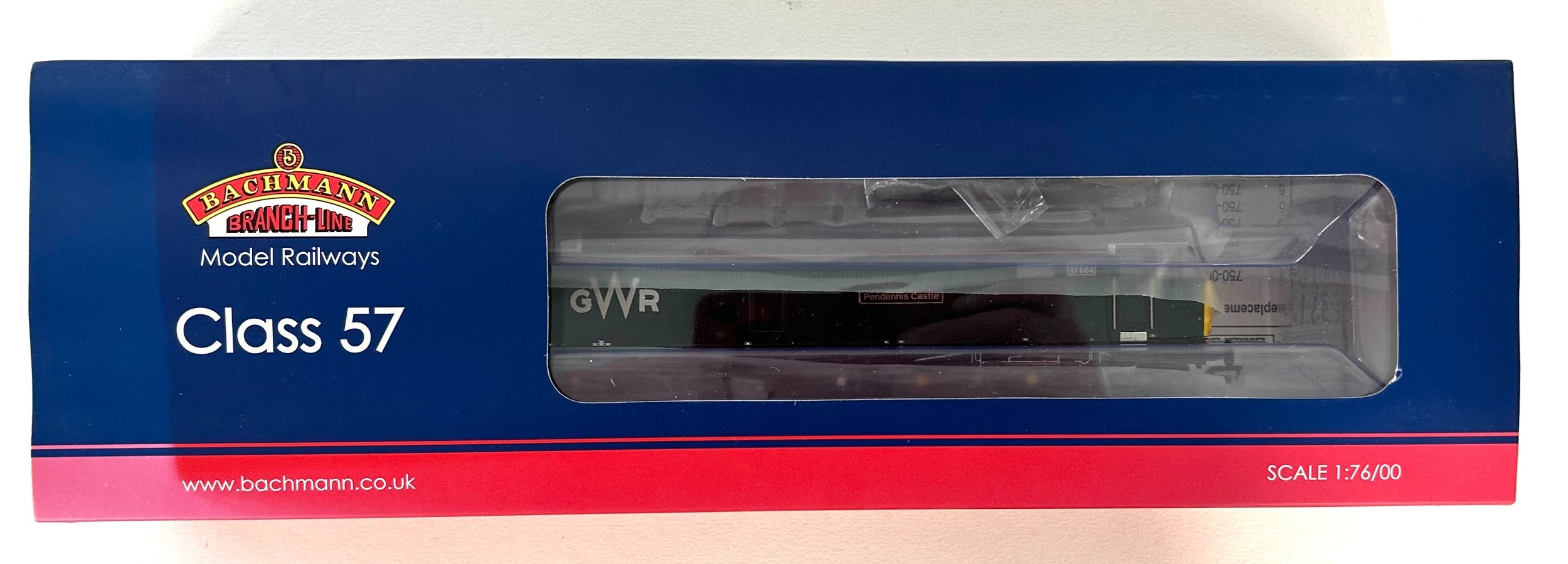 Bachmann Branch-Line OO Diesel-Electric Locomotive. Class 57 57602 'Restormel Castle' (32-756A) in GWR Green (First Group) livery. Boxed, light fading to one corner. Contents looks to be as new.