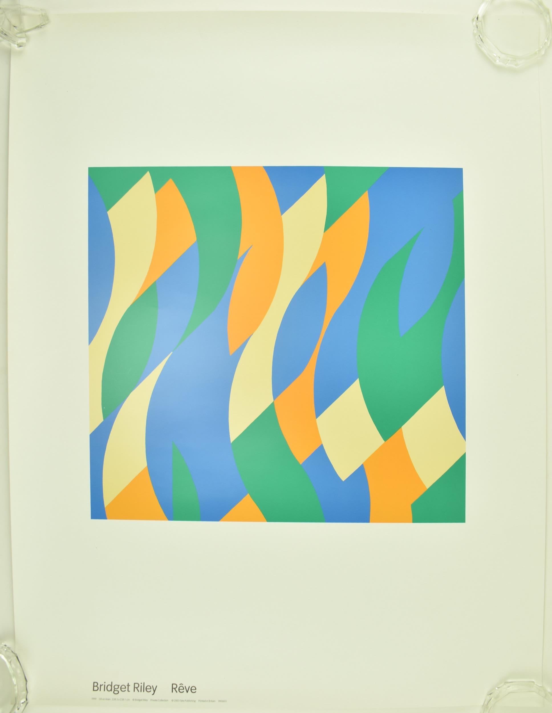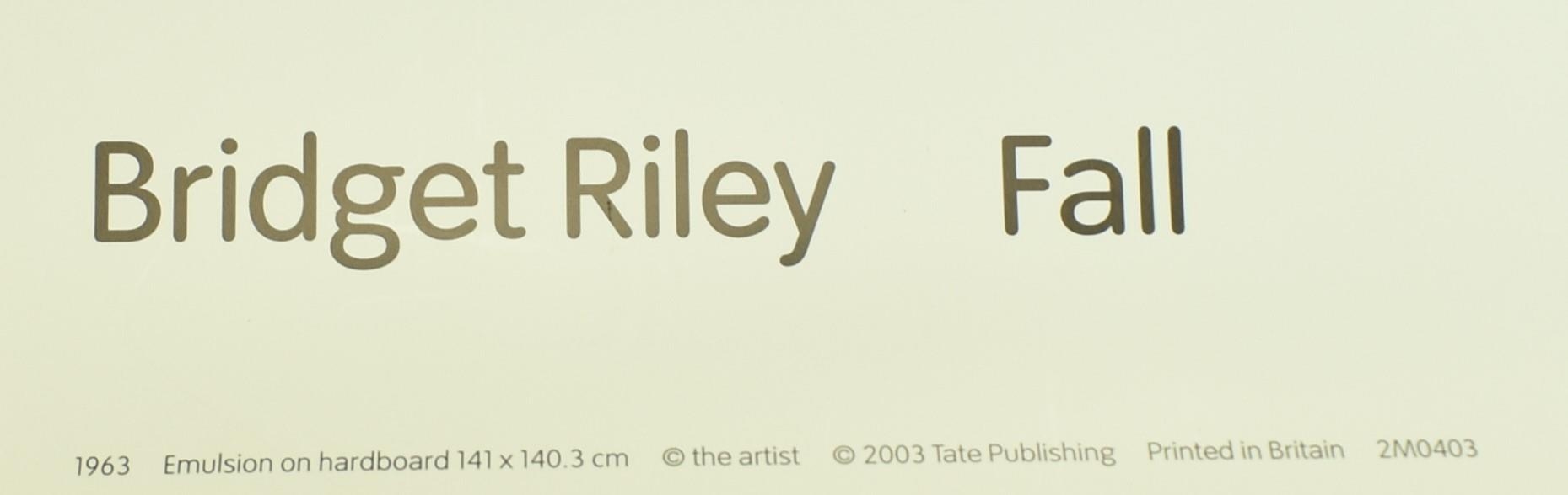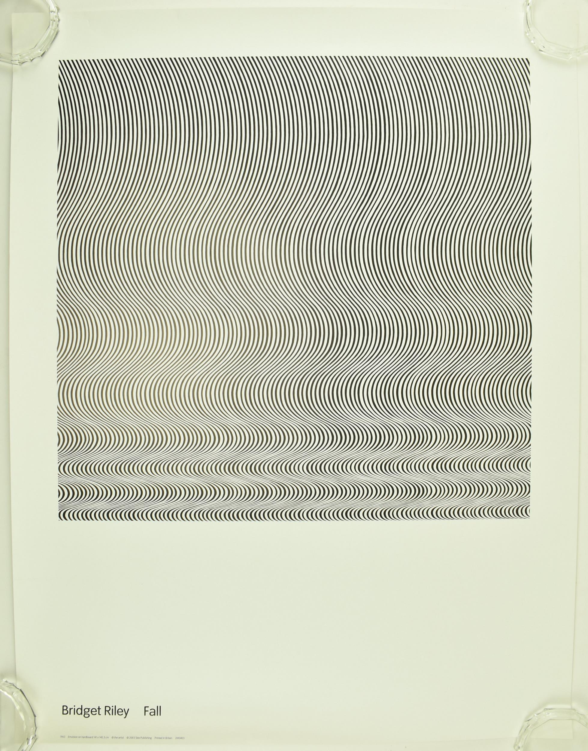 After Bridget Riley (British, b. 1931) - Reve & Fall - Two vintage early 21st century Tate Gallery exhibition / gallery posters. The lot to include 1999 Reve, together with 1963 Fall. Both unframed and rolled up. Each measures approx. 80cm x 60cm.