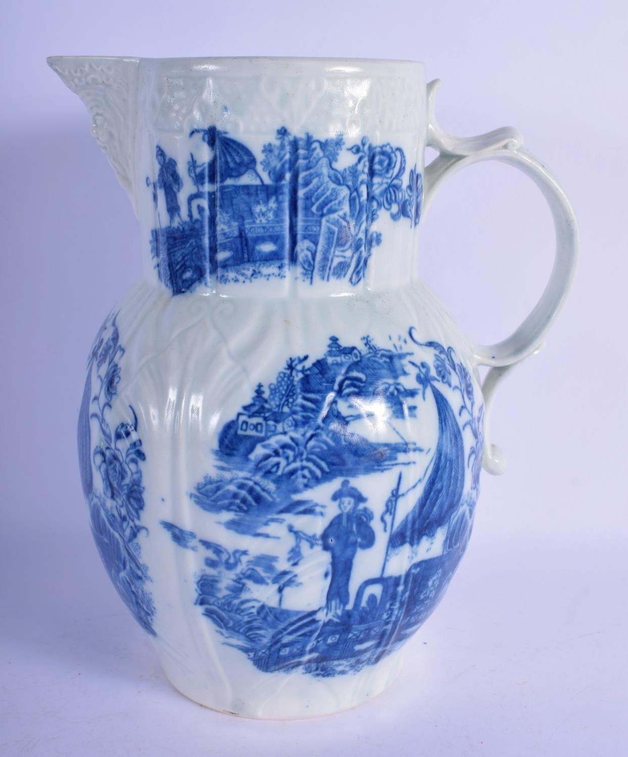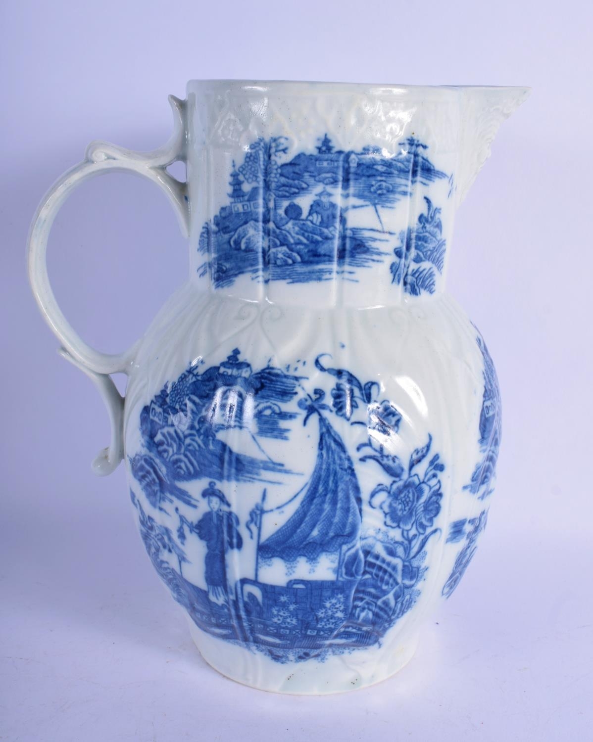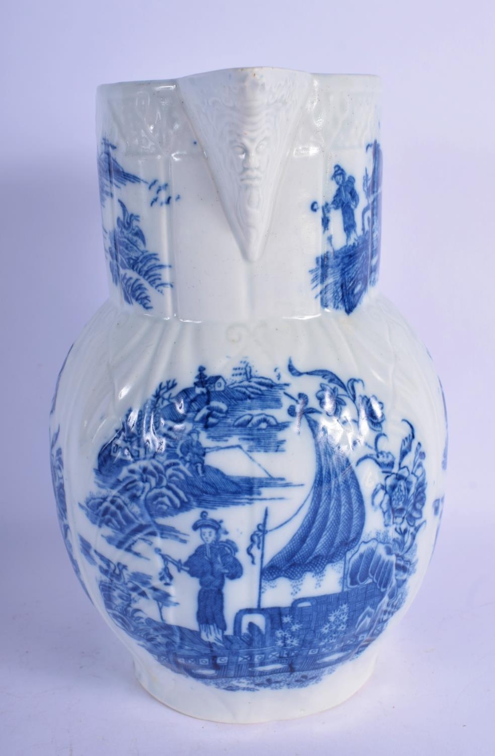 Caughley large size mask jug printed with the Fisherman and Cormorant pattern. 24cm High