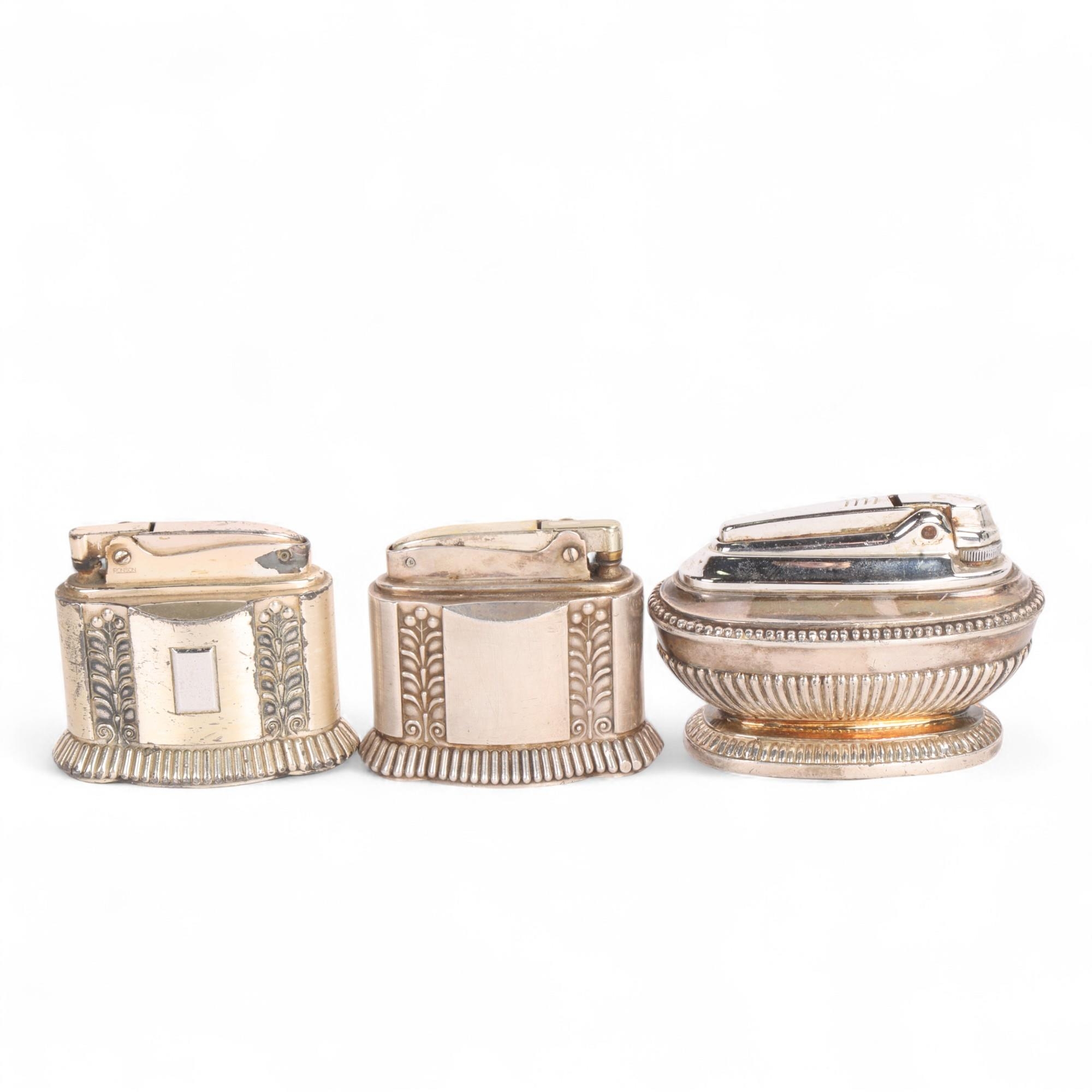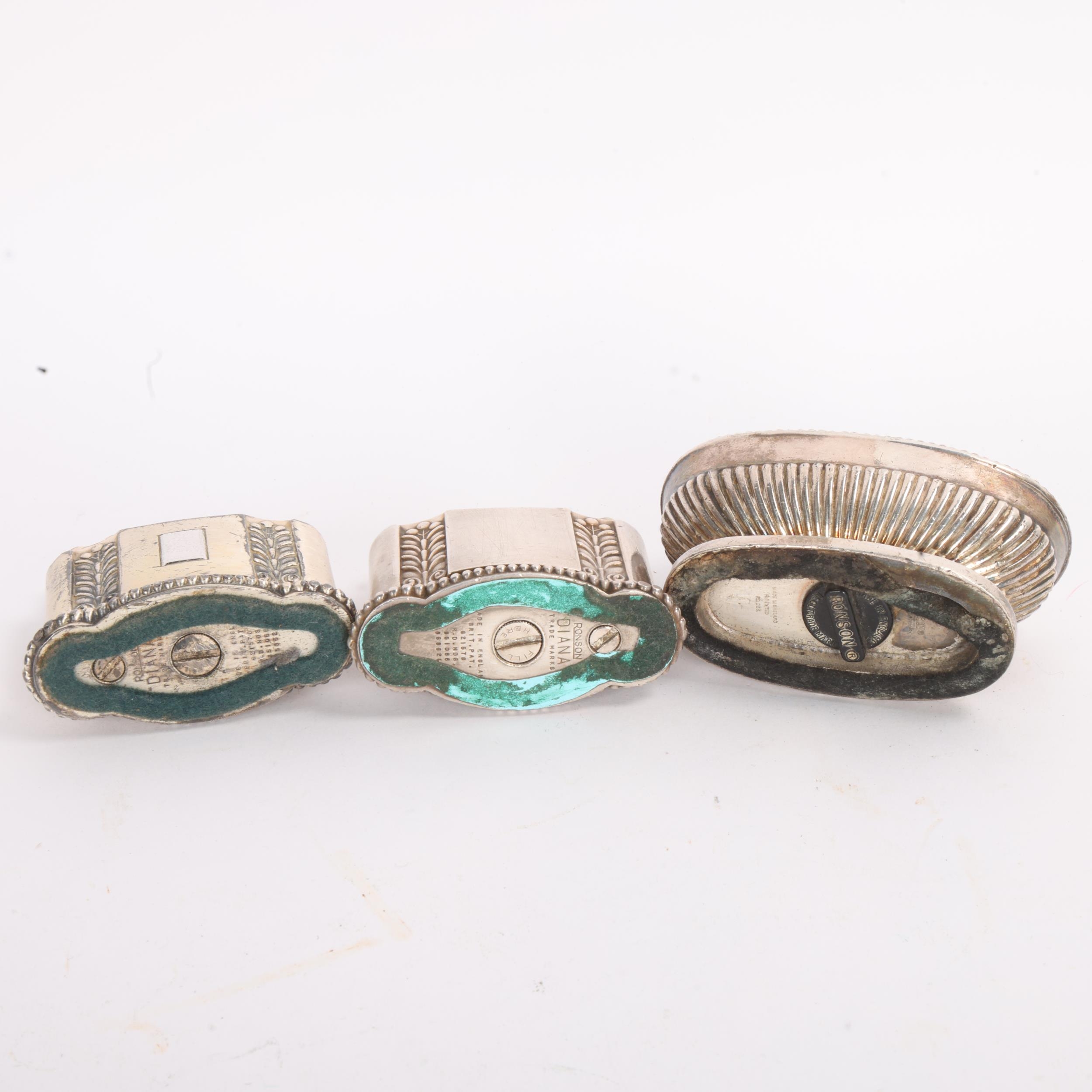 3 vintage Ronson silver plated table lighters, 2 "Diana" models and 1 other