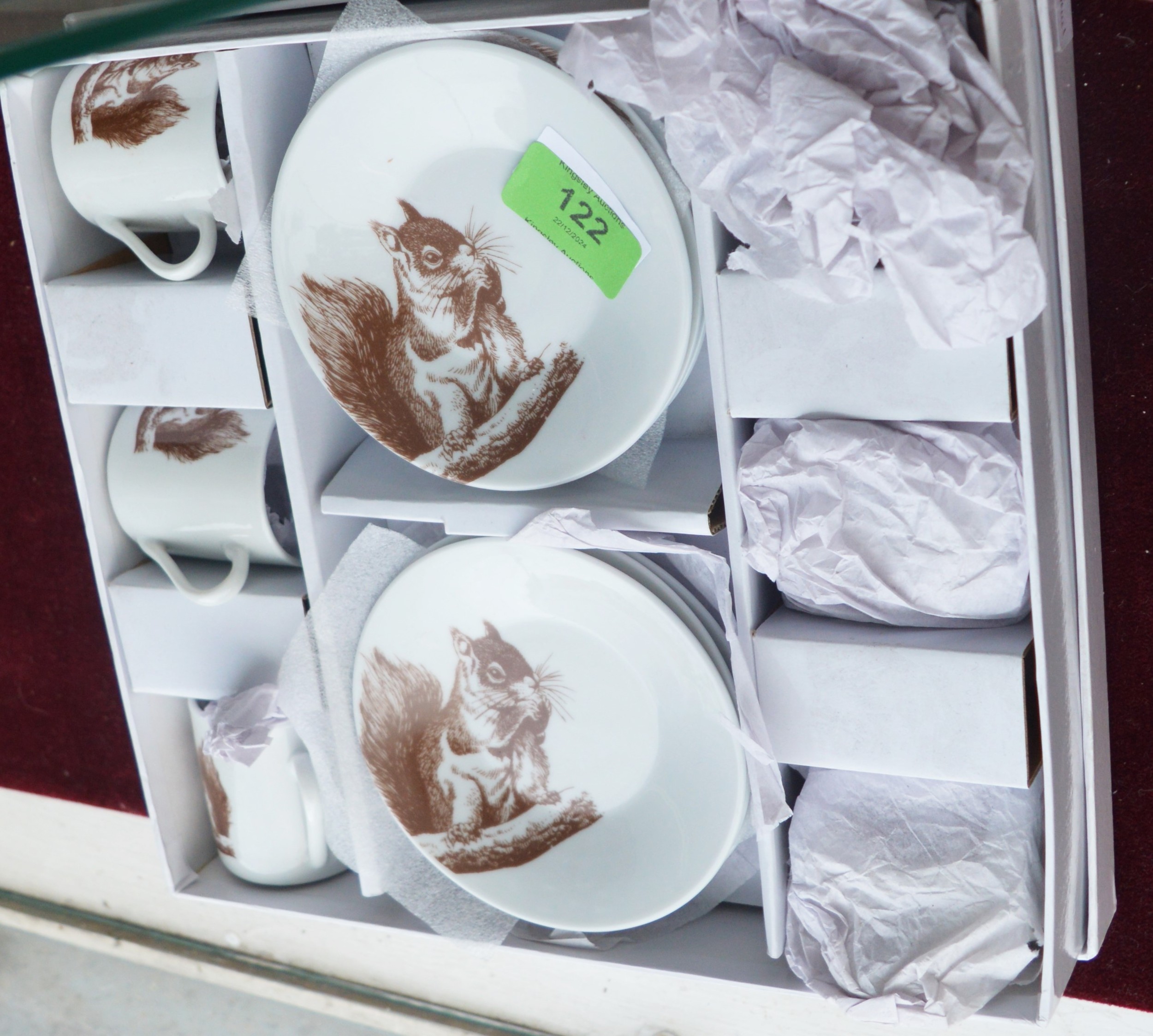 An Boxed Aulica Expresso Coffee Set having Squirrel Theme, Plus Assorted Royal Commemorative Ware, Plus Avon Bottle in Form of Car