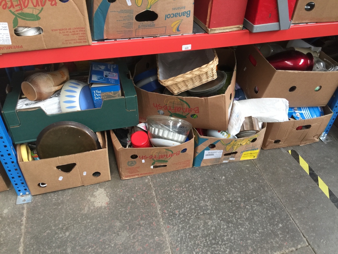 7 boxes of misc pottery, ceramics, metalware, ornaments, glass, etc.