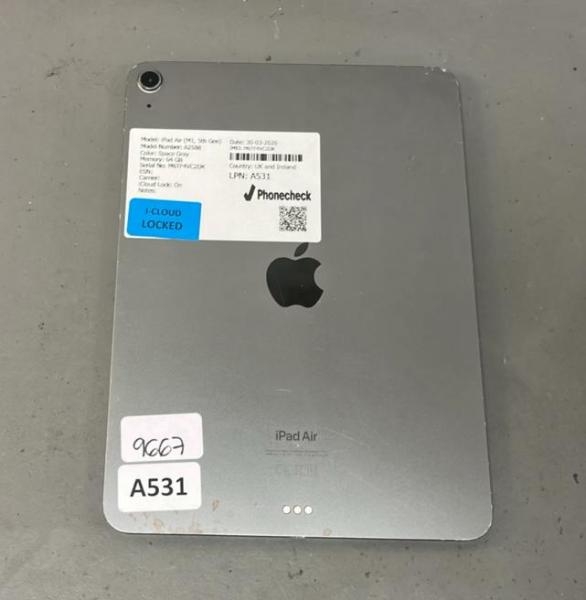 APPLE AIR (M1, 5TH GEN)/ A2588/ SPACE GRAY/ 64GB/ I-CLOUD LOCKED/ IMEI: M6TF4VC2DK - SCREEN SLIGHT DAMAGED