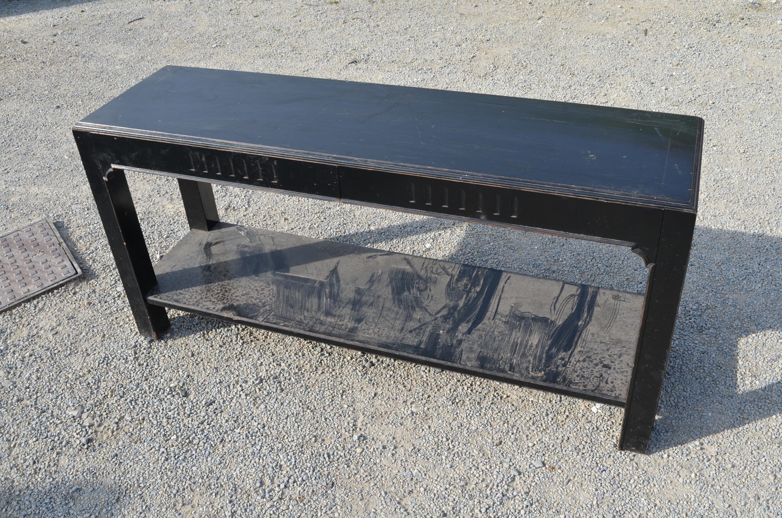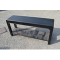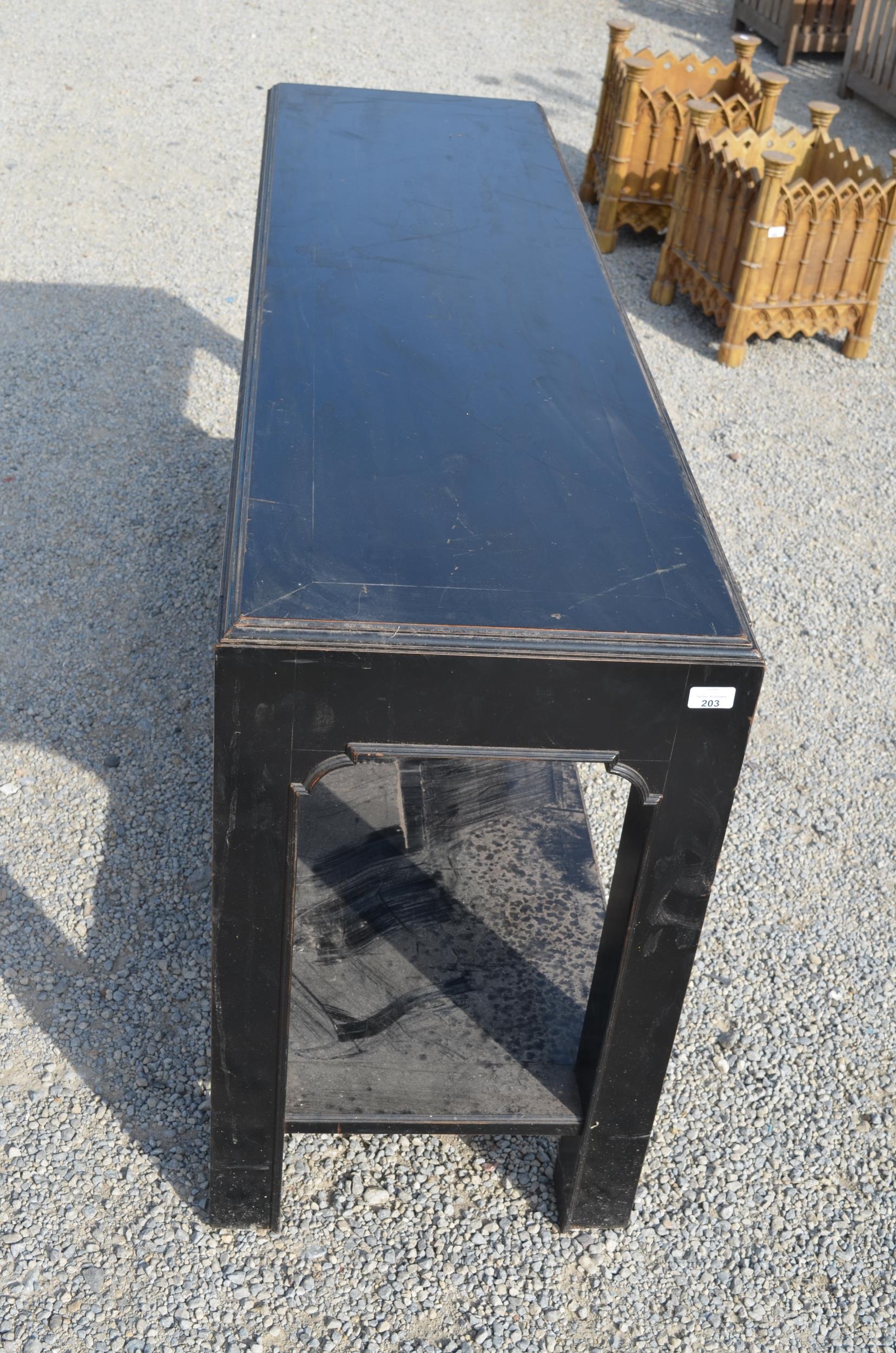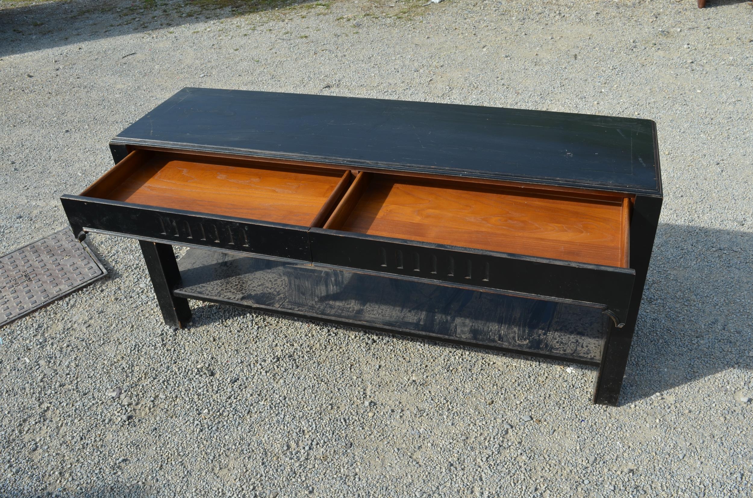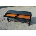 Georgian style ebonised side table with two drawers on square supports W160cm D45cm H77cm.