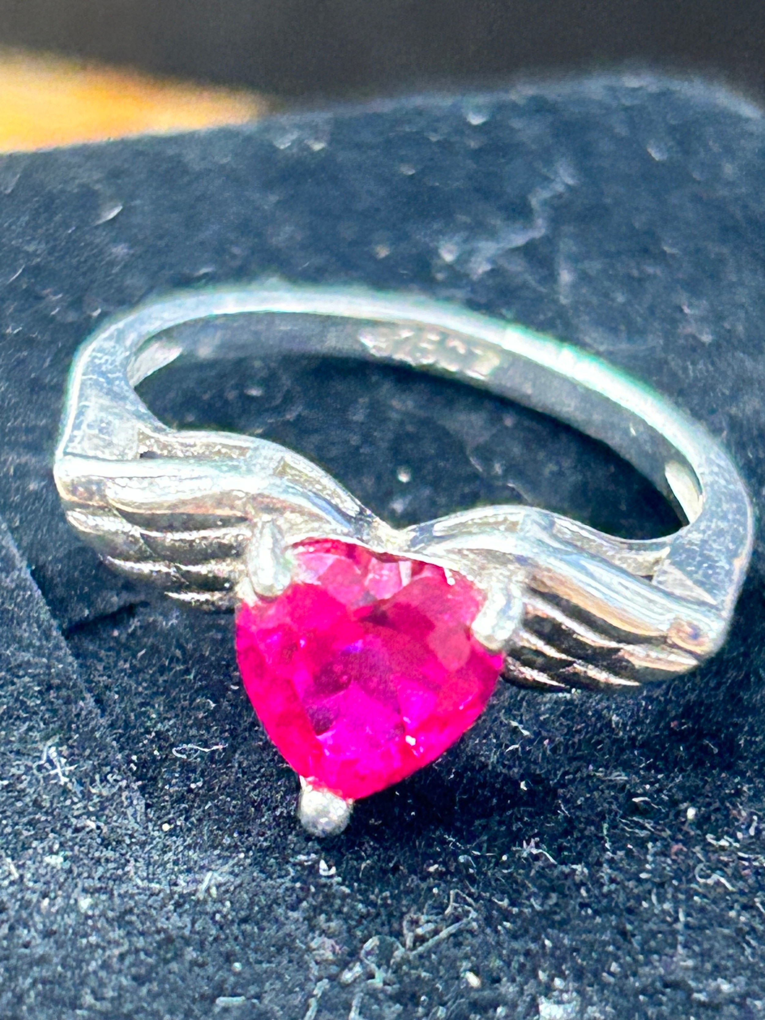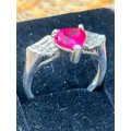 925 silver ring with coloured cz heart stone