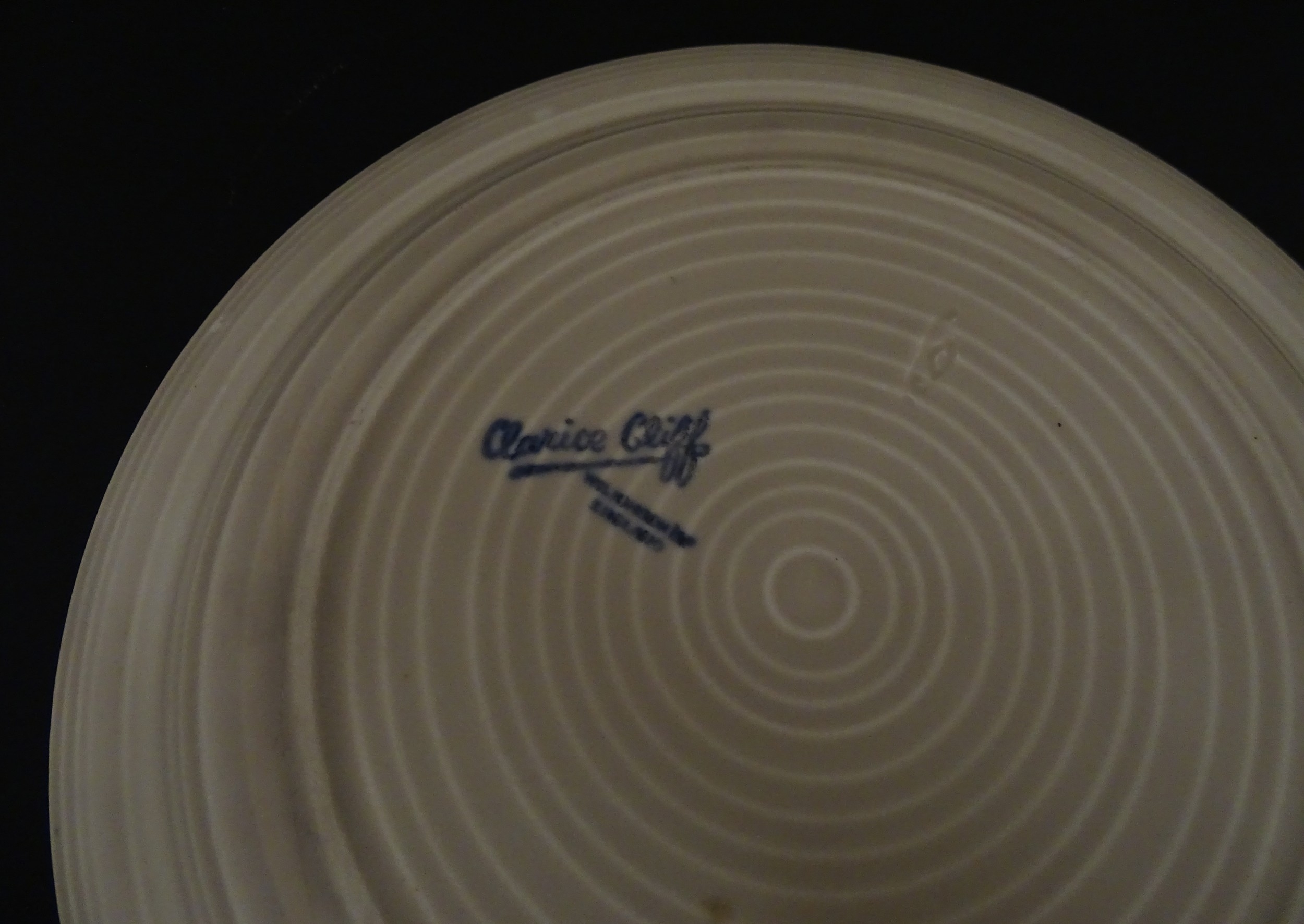 A Wilkinson Clarice Cliff muffin dish. Marked under. Approx. 8 1/2" wide overall