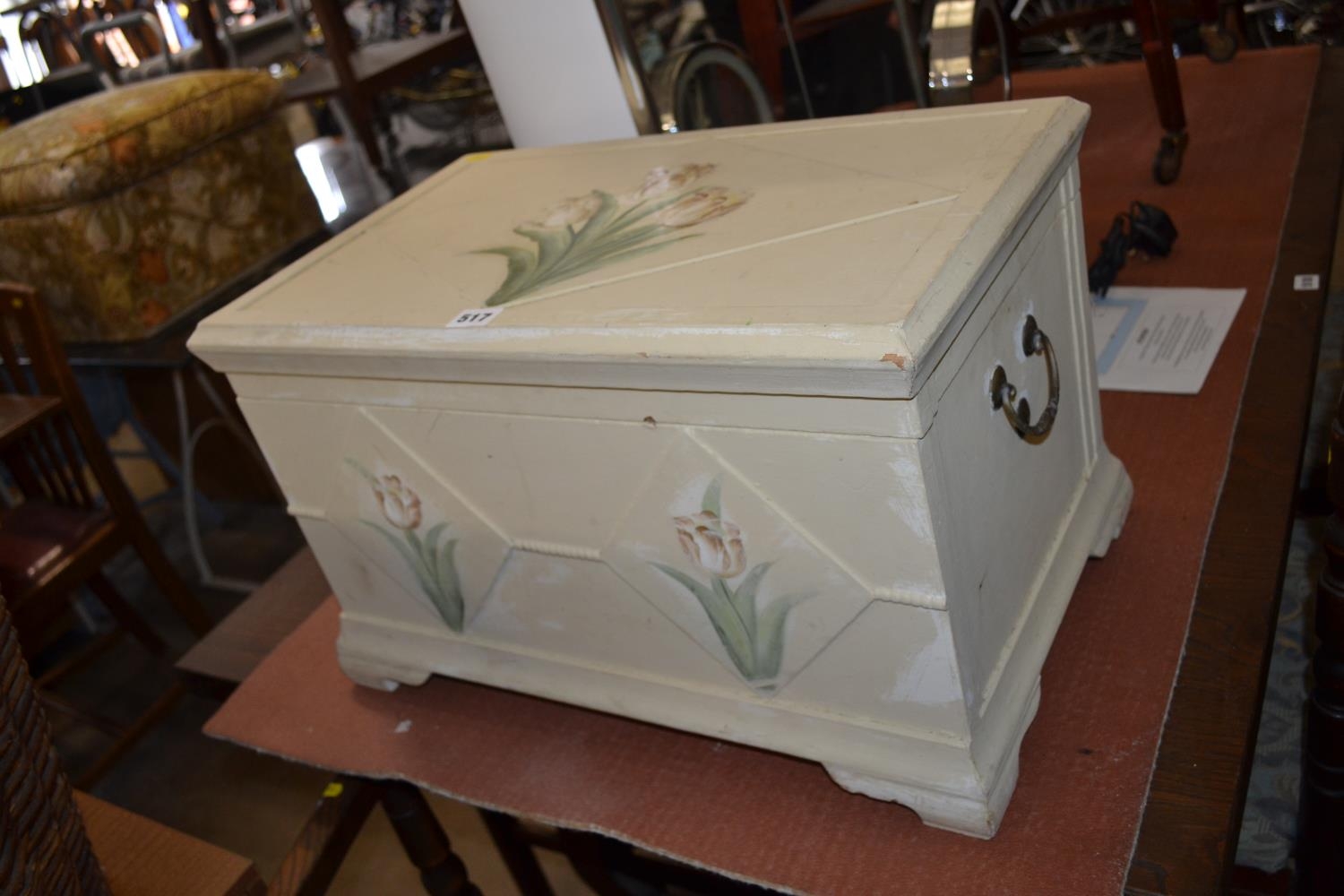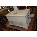 CREAM PAINTED SMALL CHEST WITH FLOWER DECORATION AND 2 HANDLES