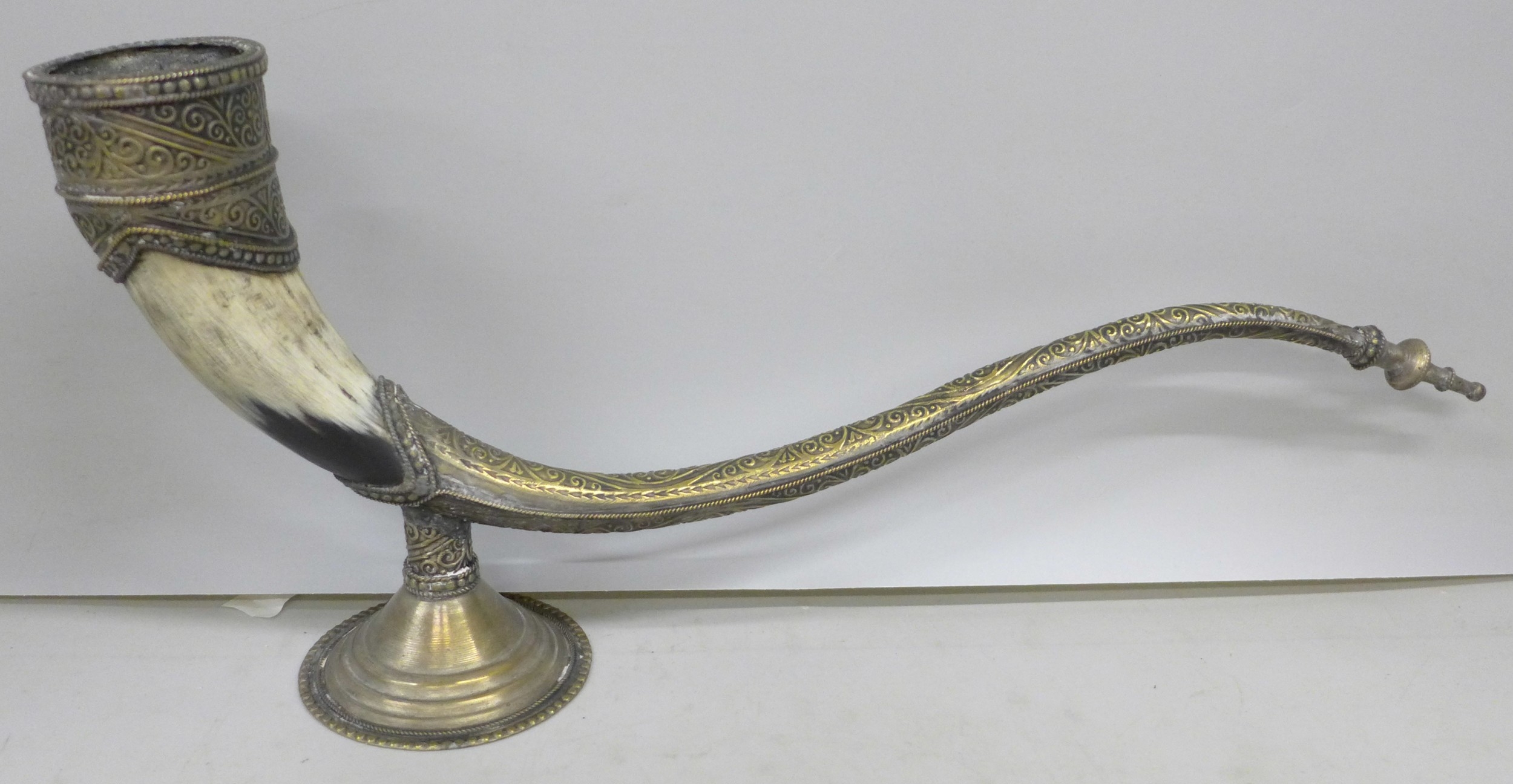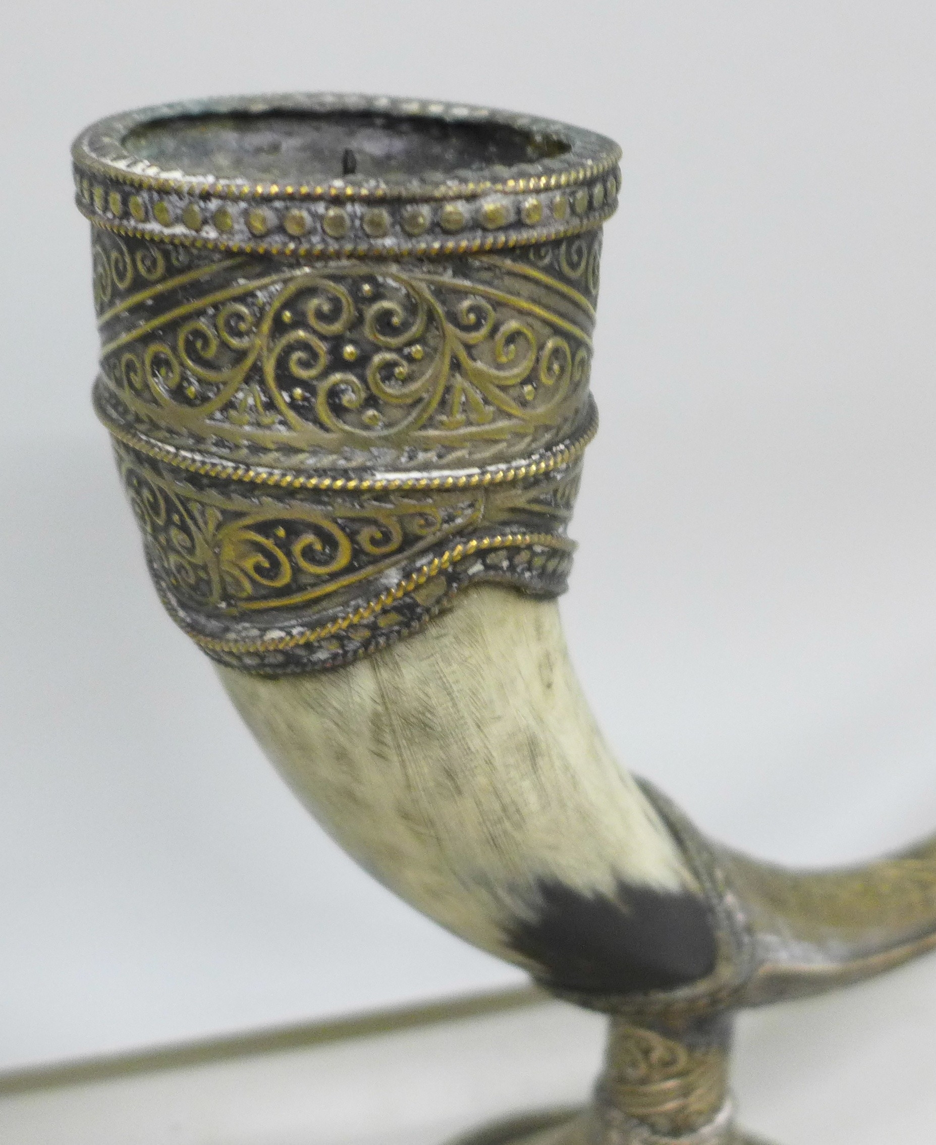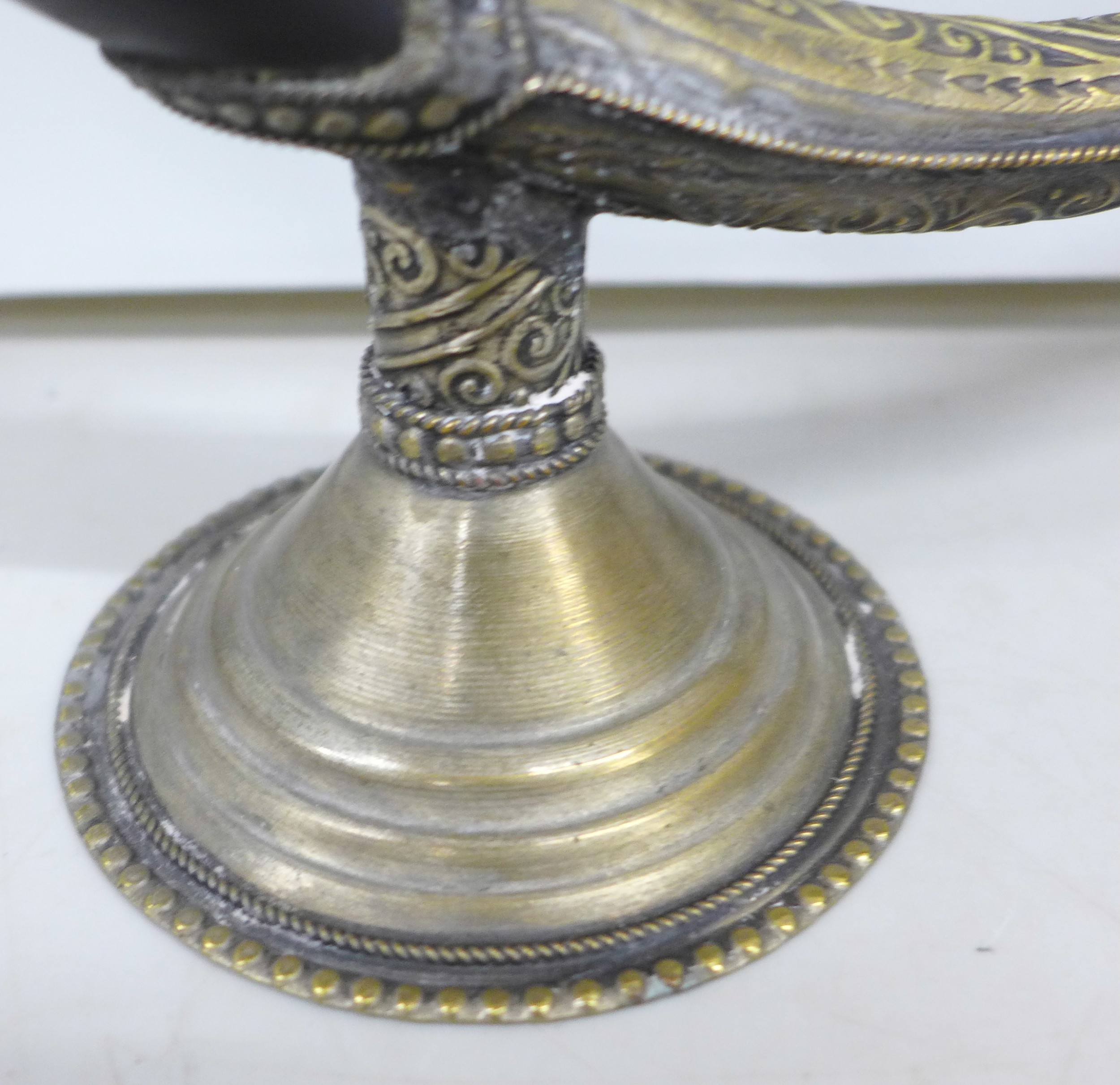 A Moroccan candle holder in the form of a pipe, 43cm