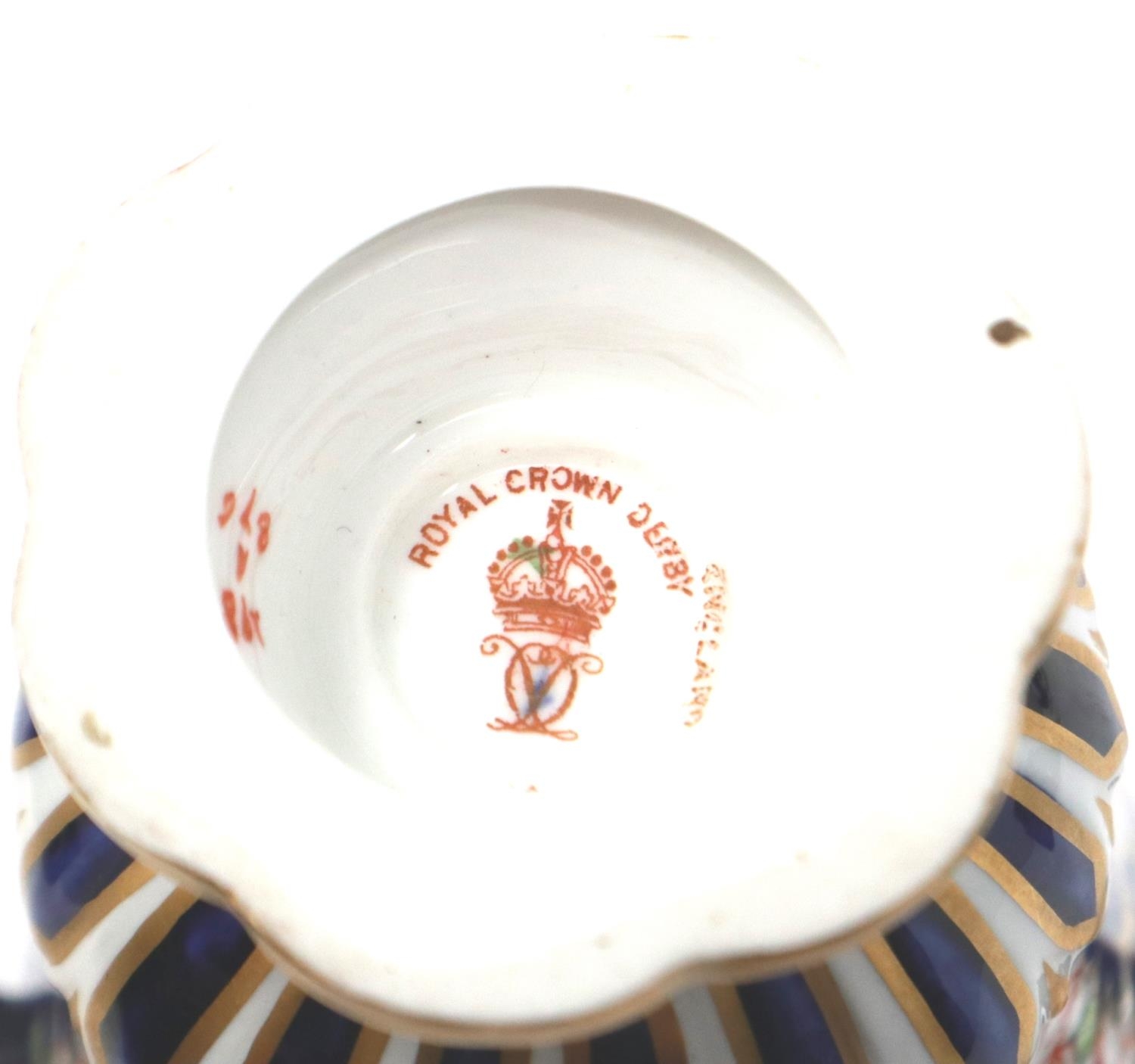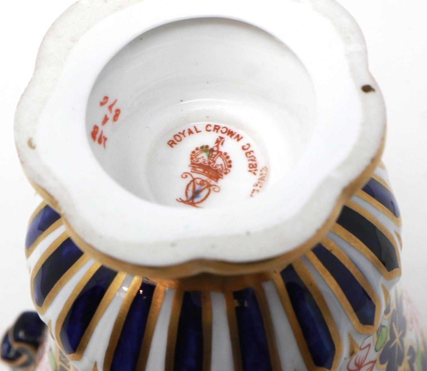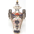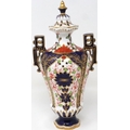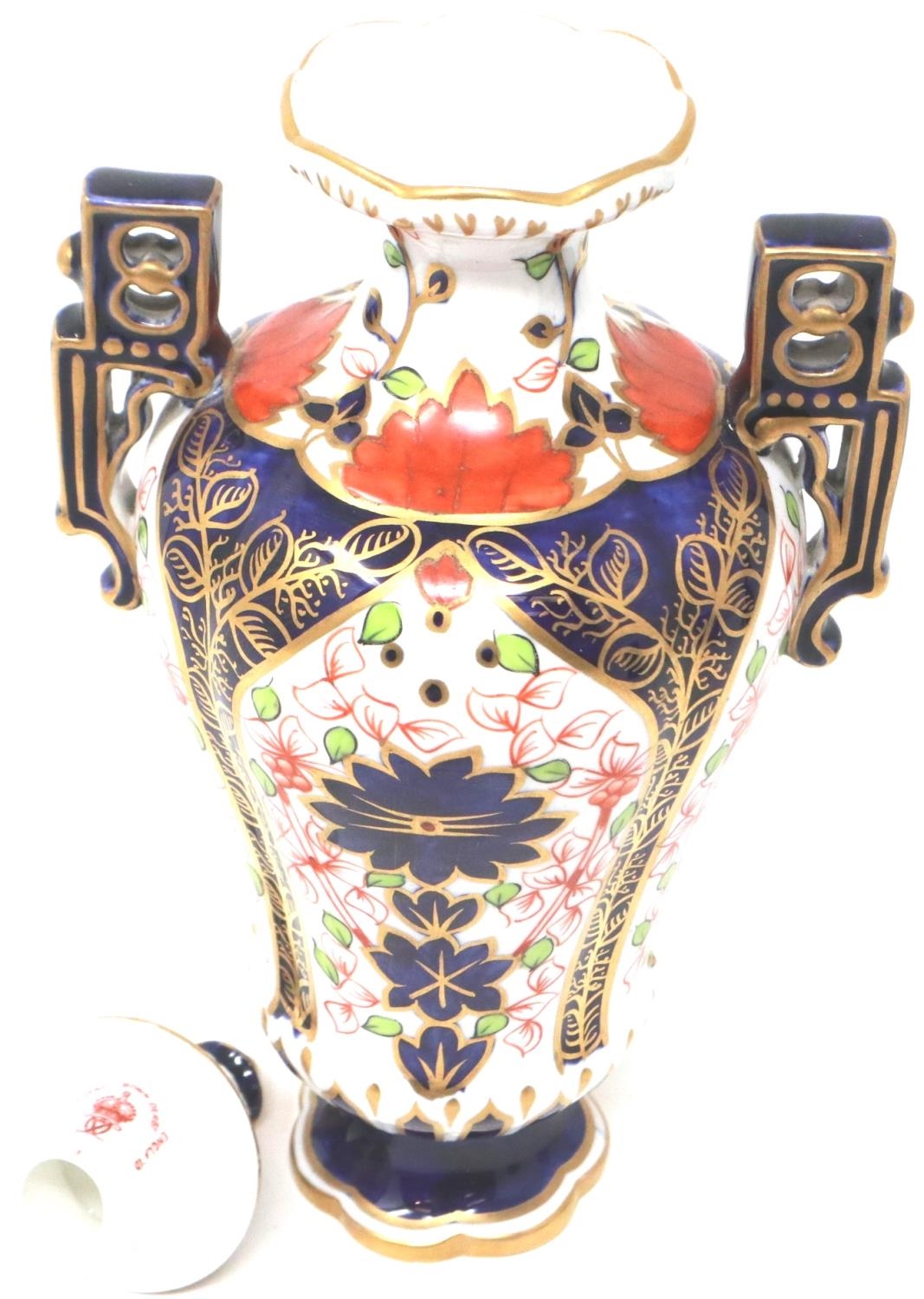 19th century Royal Crown Derby twin handled urn in the Imari pattern, H: 22 cm, small chip to base, no visible restorations. P&P Group 1 (£14+VAT for the first lot and £1+VAT for subsequent lots)