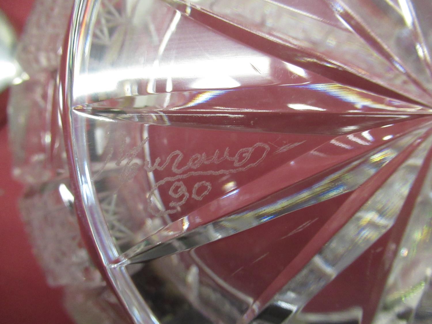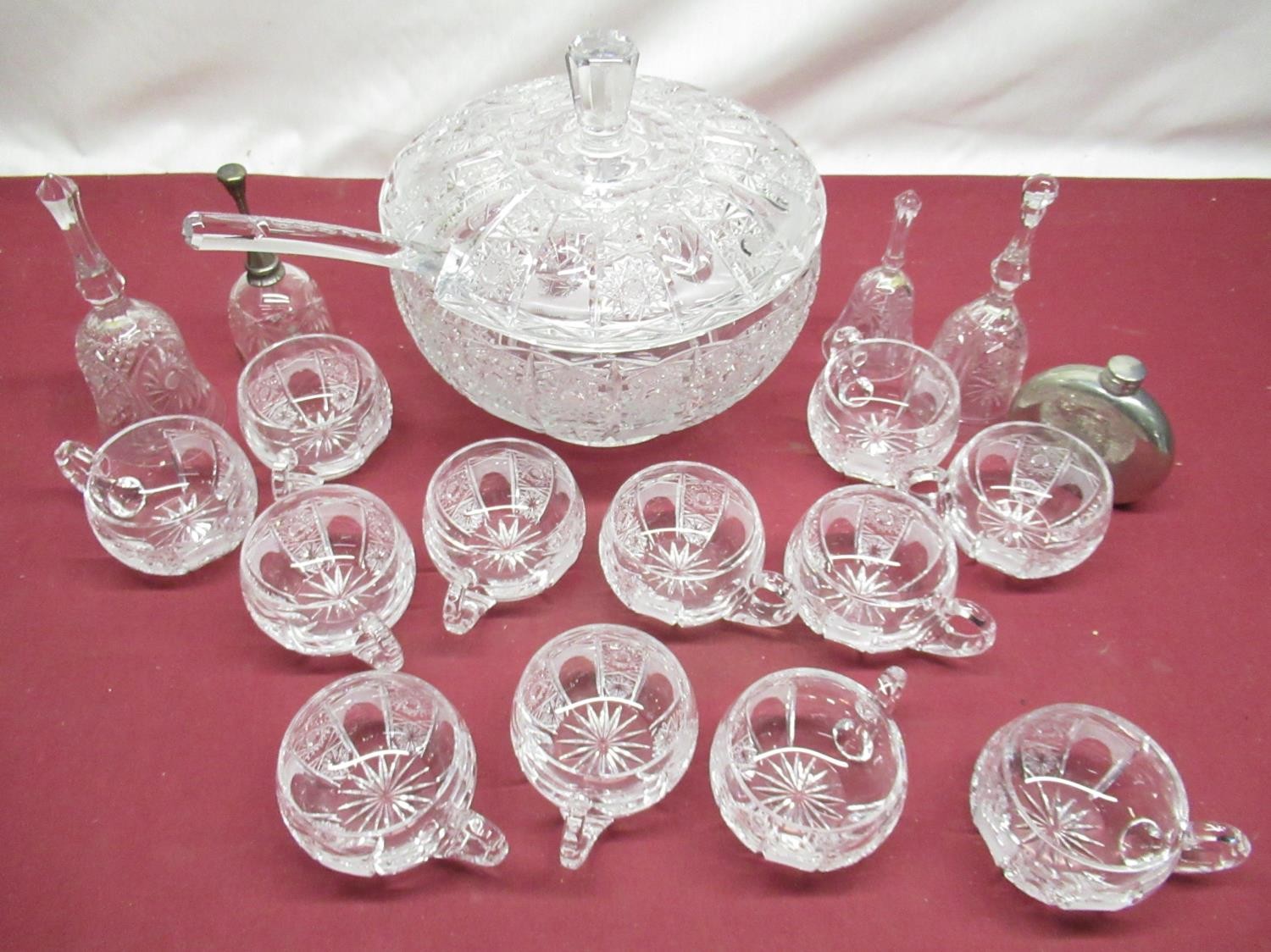 Late C20th Murano lead crystal punch bowl with cover, ladle, glasses