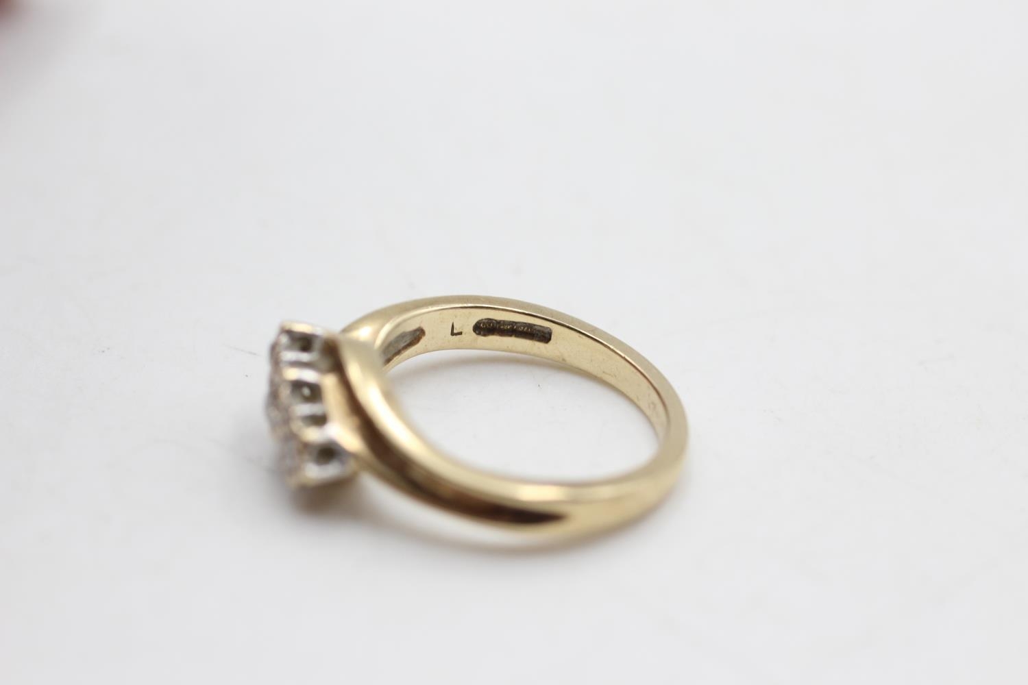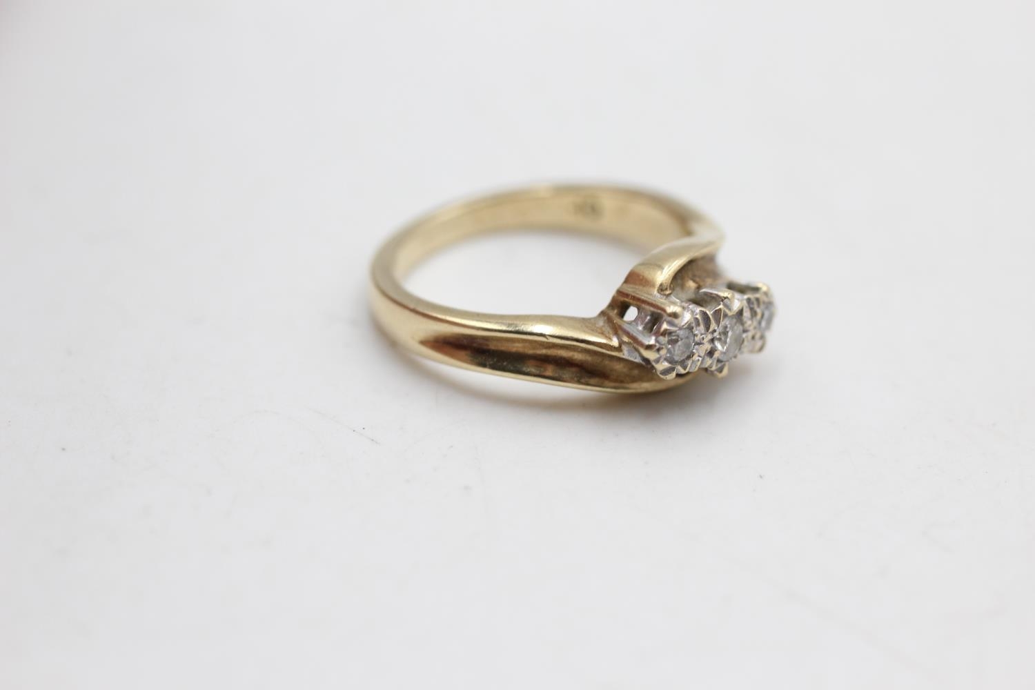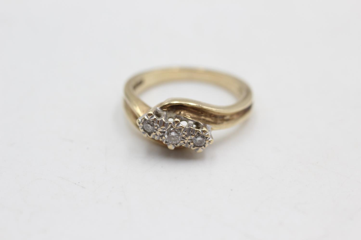 9ct gold vintage diamond three stone bypass ring (3g) size K