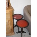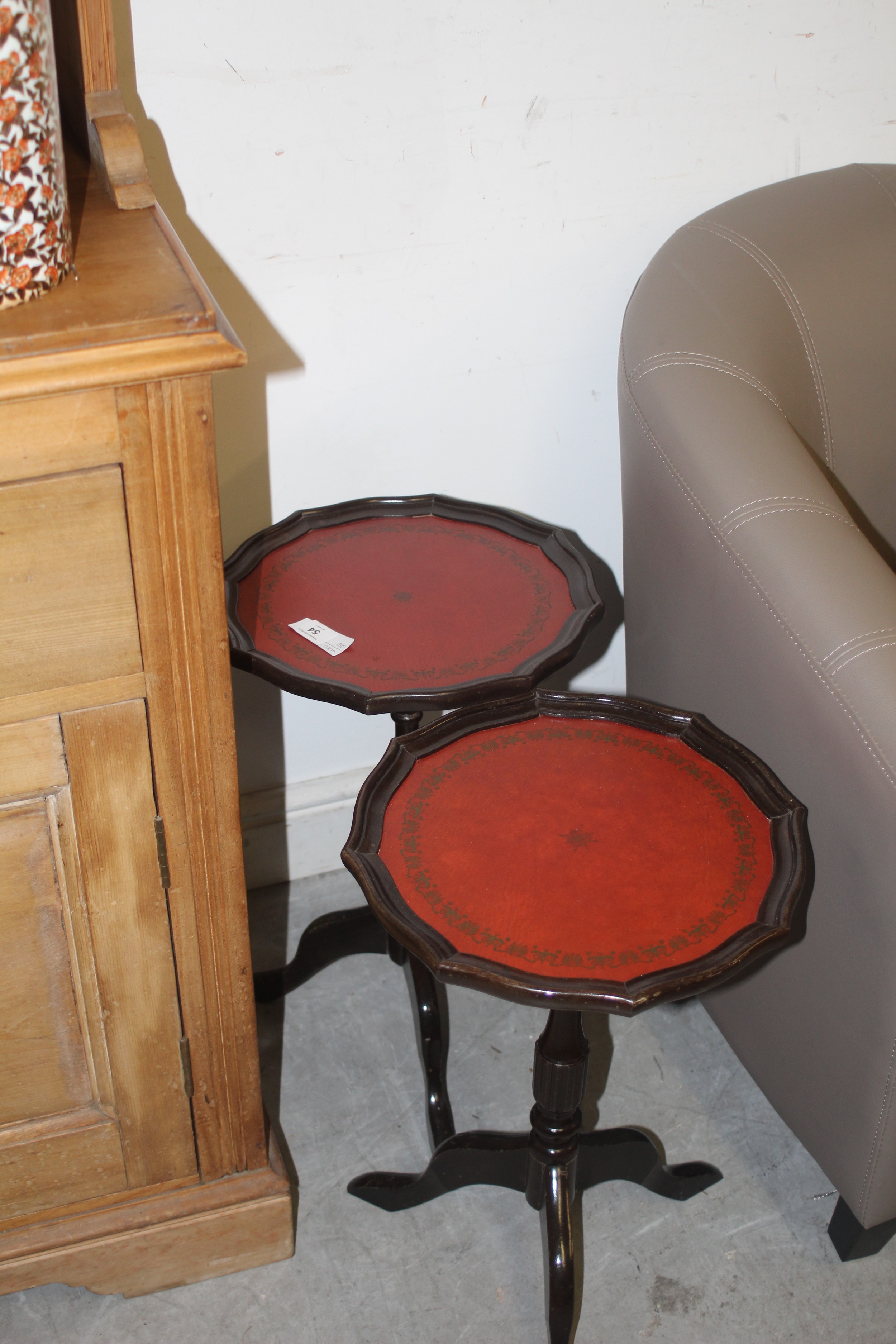Pair of Single Pedestal Pie Crust-Topped Wine Tables having Red Leather Inset (good condition)