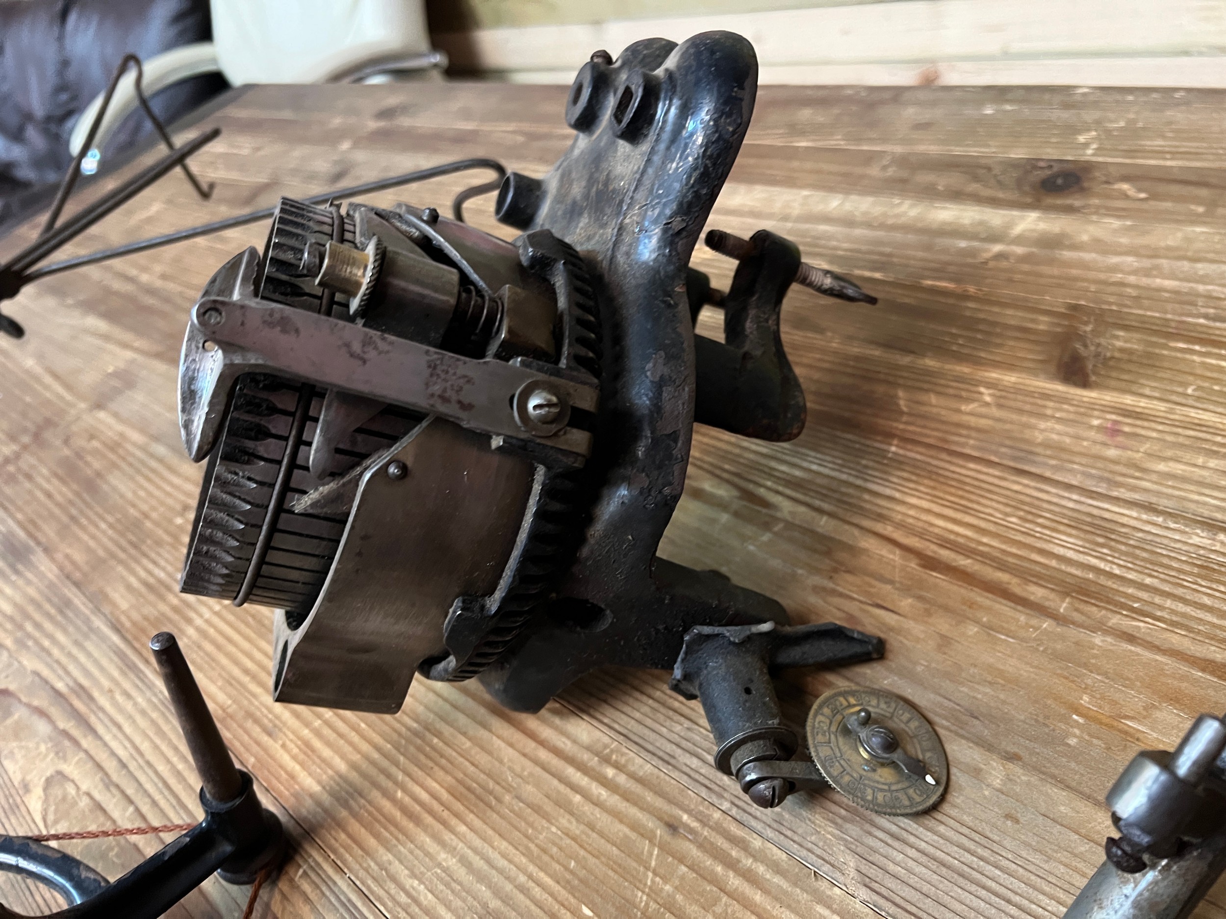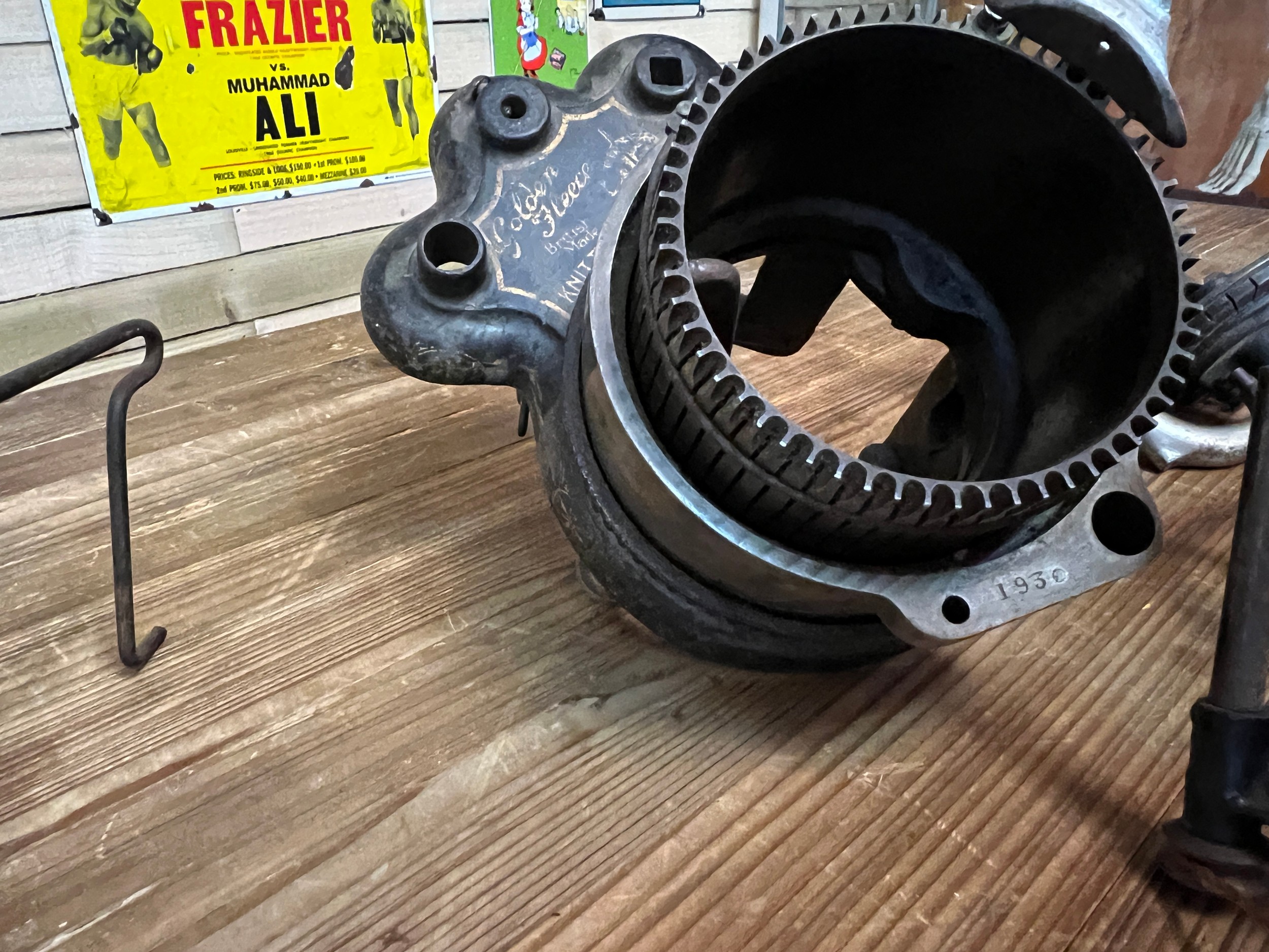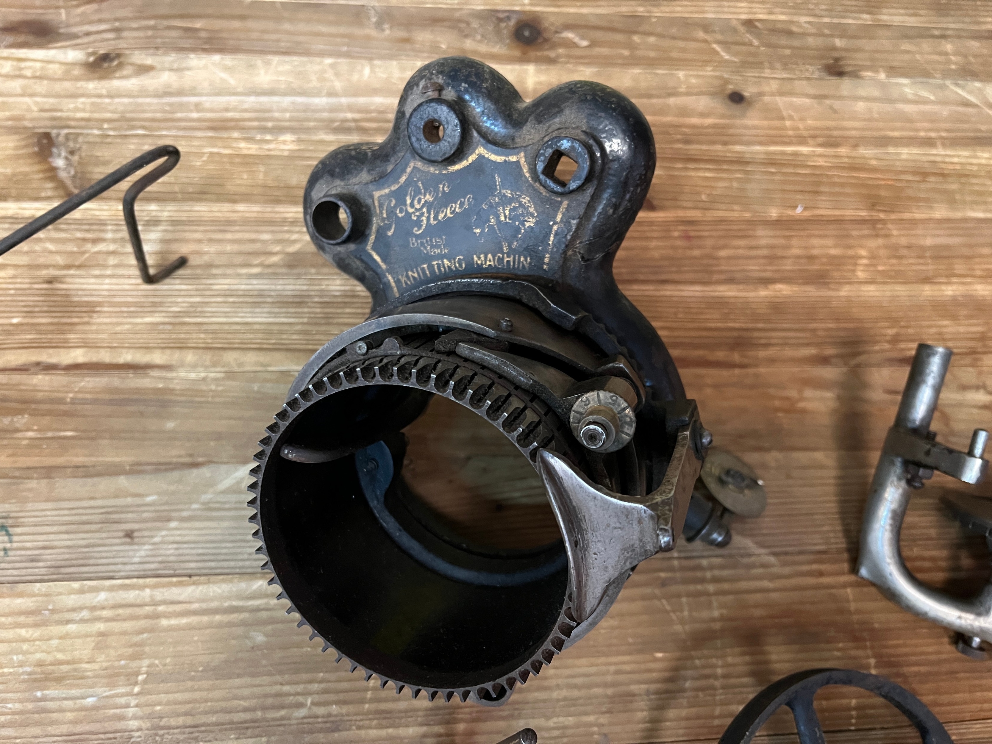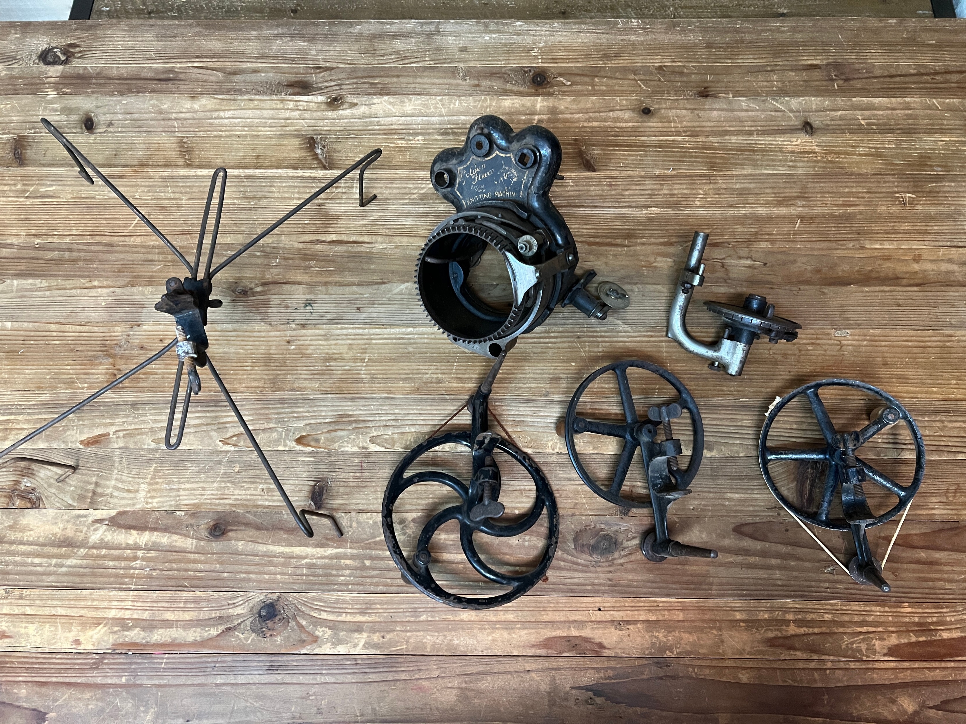 Vintage sock knitting machine and accessories