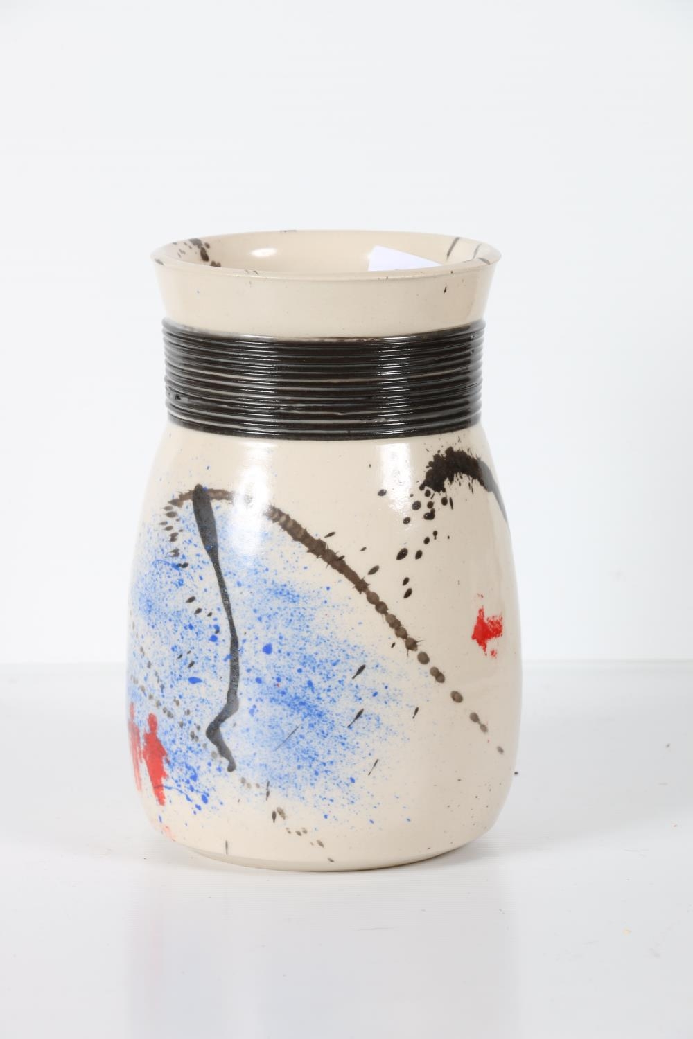 Studio Pottery vase with figure decoration, signed to base, 20cm tall.