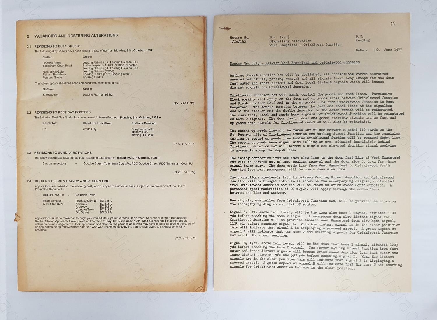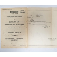2. A London Transport notice. Train and Roster alterations. 1991. 47 pages with fold out signalling diagram.