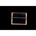 ANTIQUE RECTANGULAR MICRO MOSAIC BROOCH IN YELLOW PRECIOUS METAL MOUNT, depicting a reclining dog in the grass on an onyx background. L. 4.6 cm. 18.5 grams.