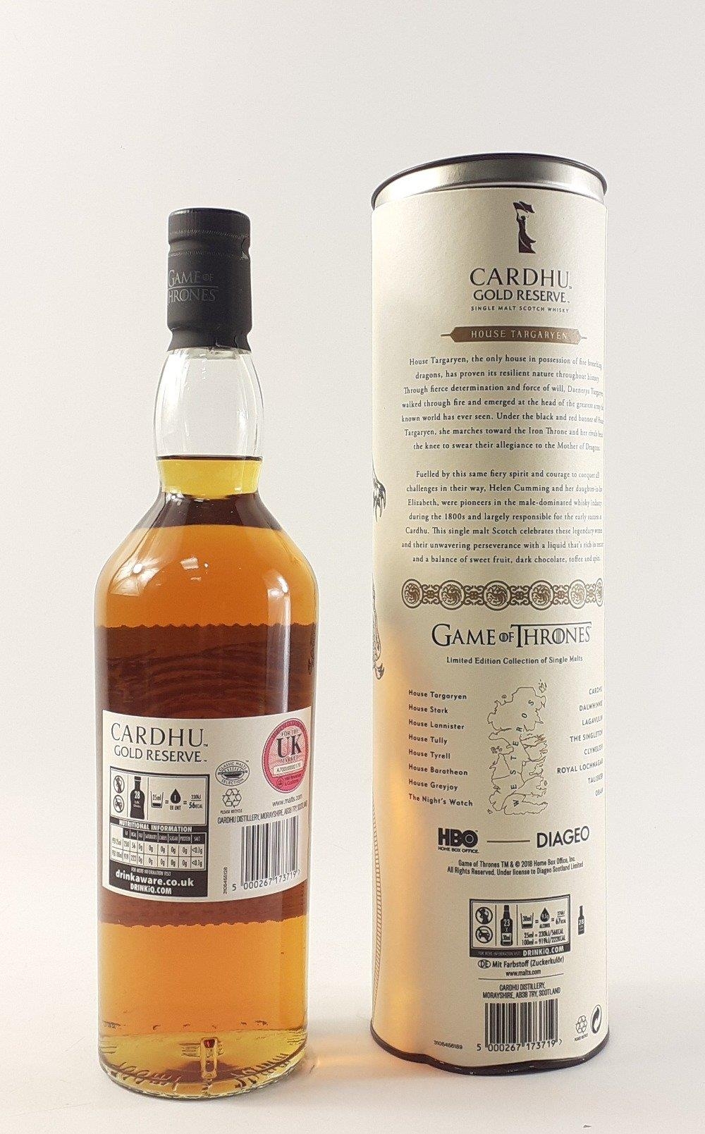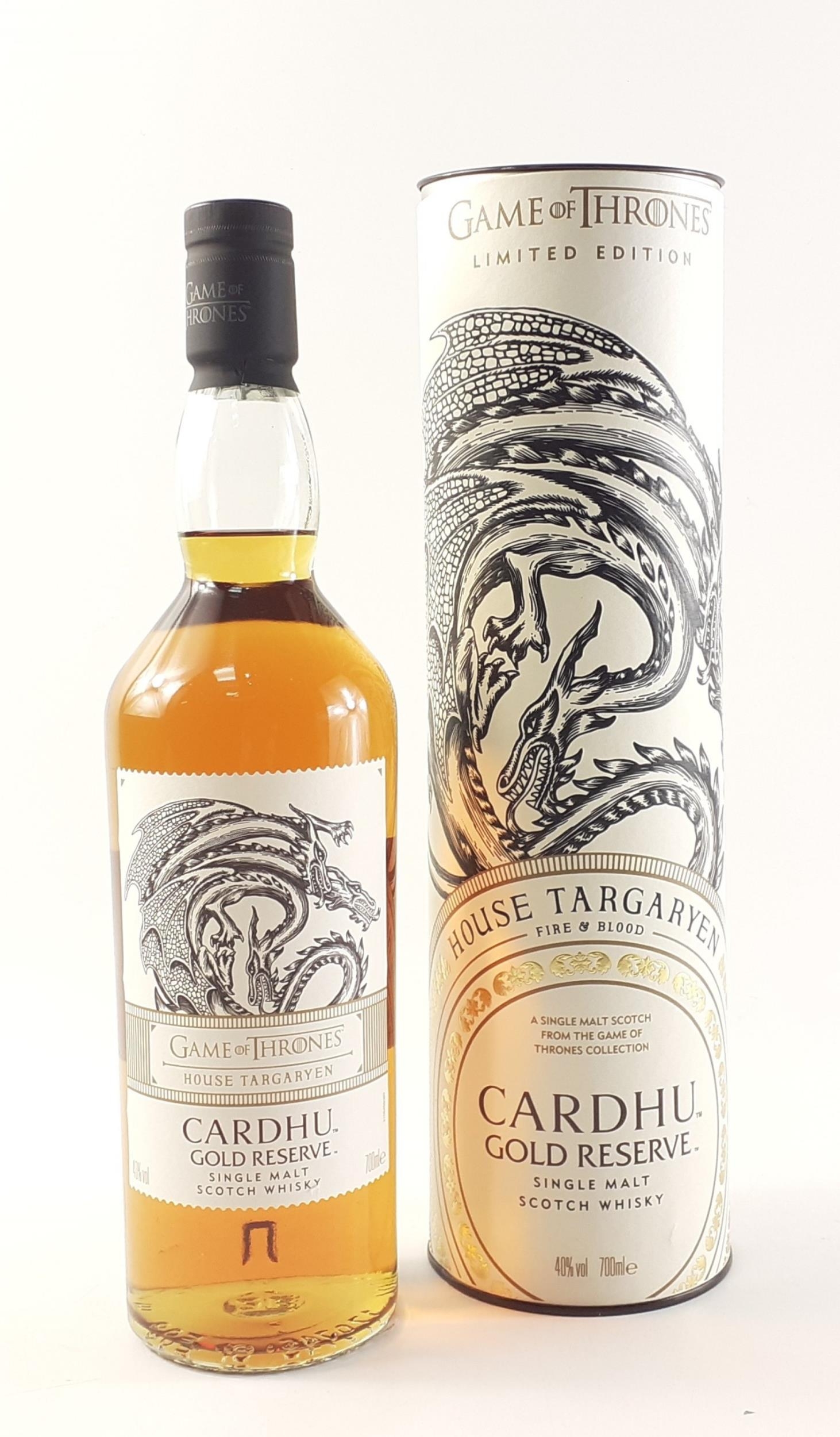 CARDHU GOLD RESERVE - Game of Thrones Limited Edition - House Targaryen Fire & Blood, single malt Scotch whisky 700ml bottle in presentation tin