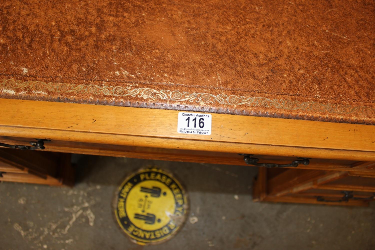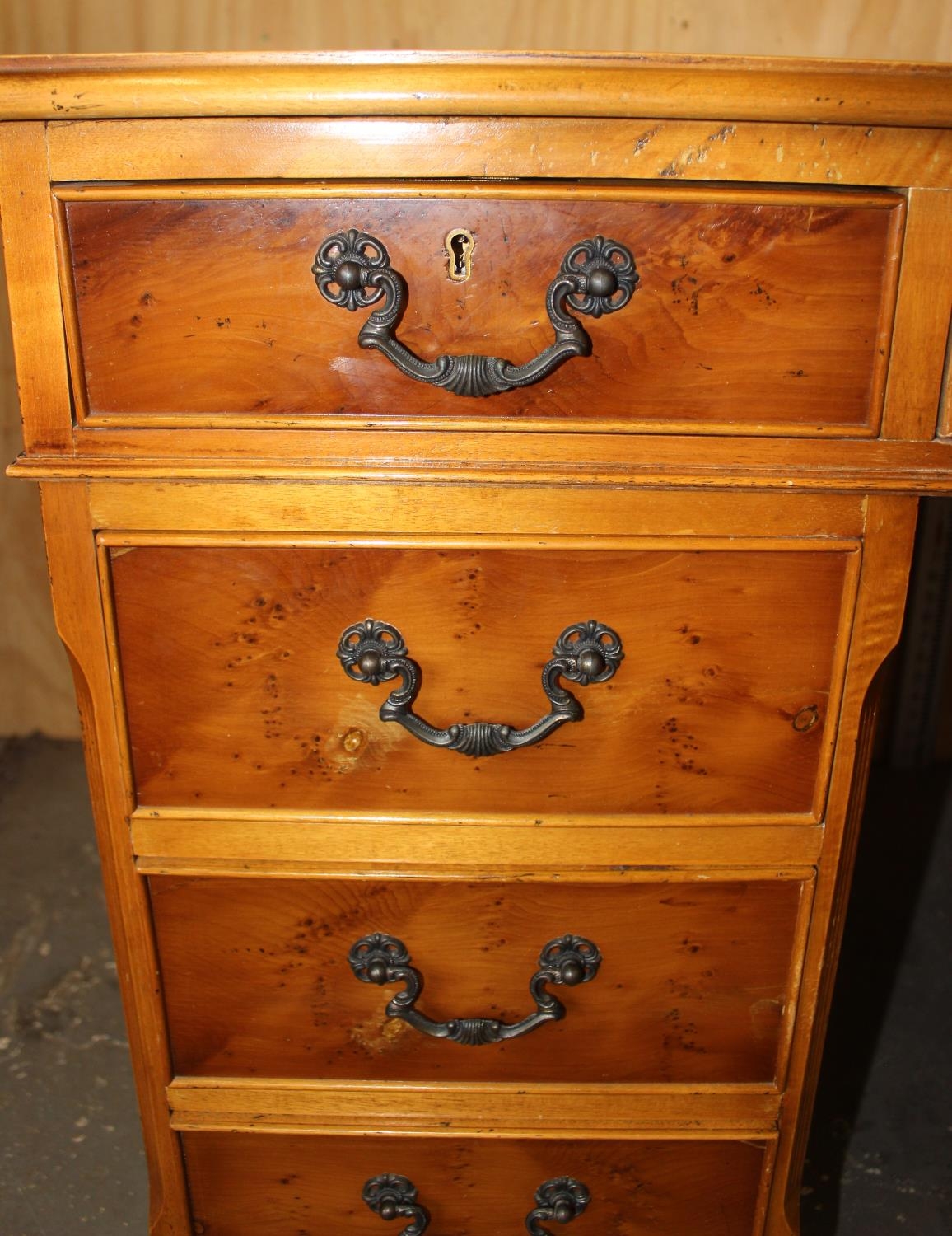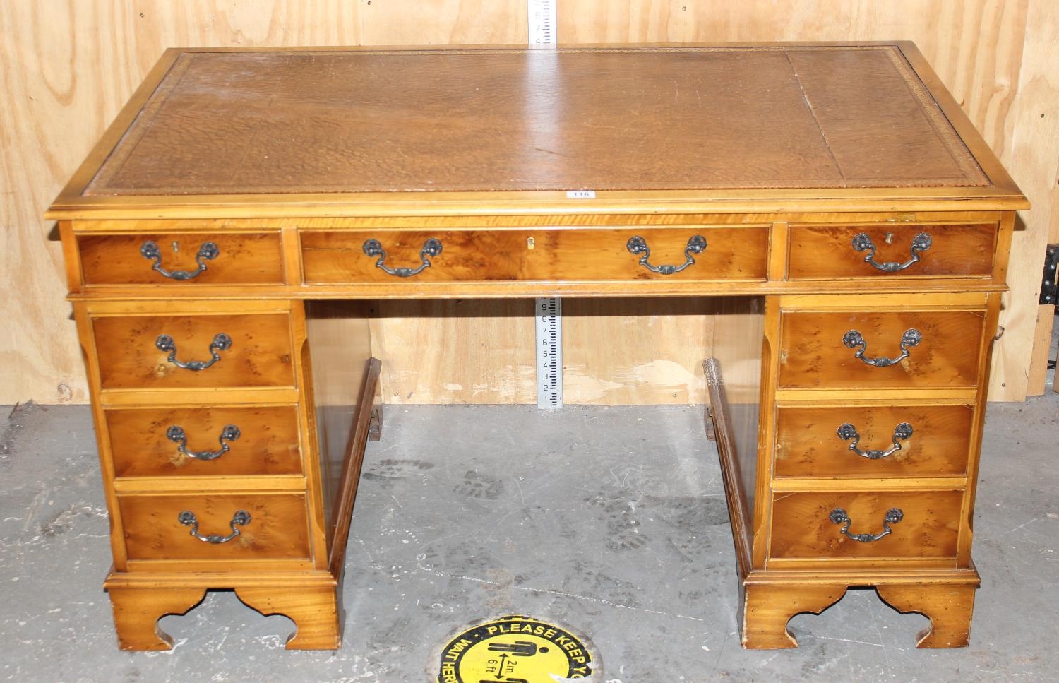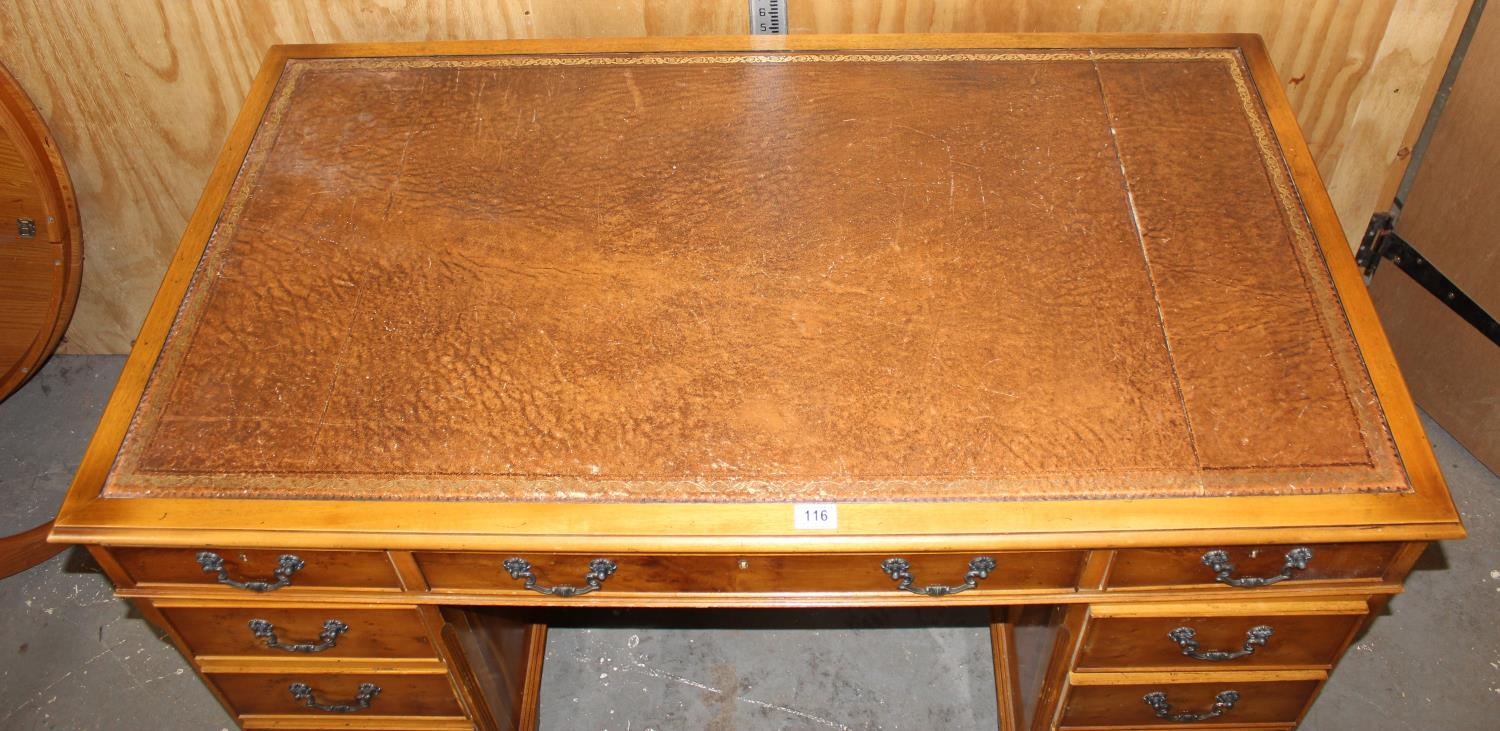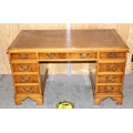 Reproduction leather topped desk with 9 drawers