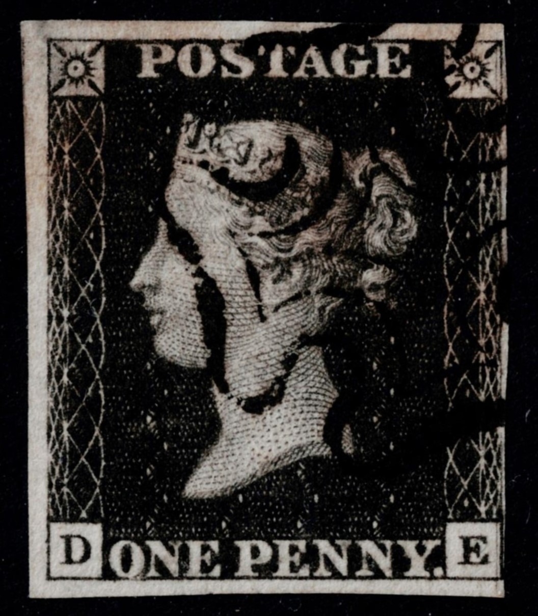 GB 1840 1d black plate 9 DE superb used four margins crisp black cross variety guideline SE corner sg2 Cat. £550