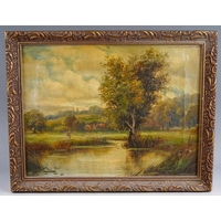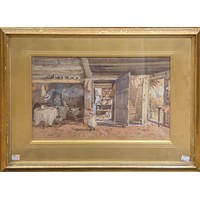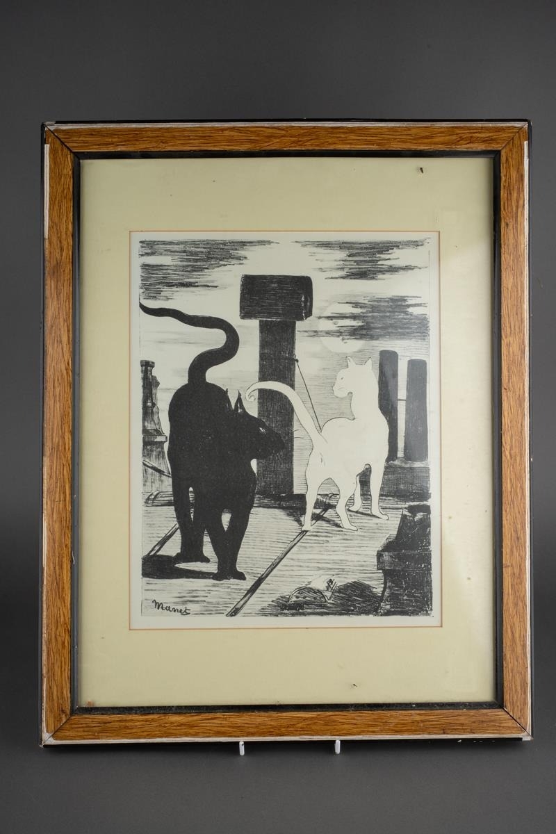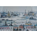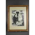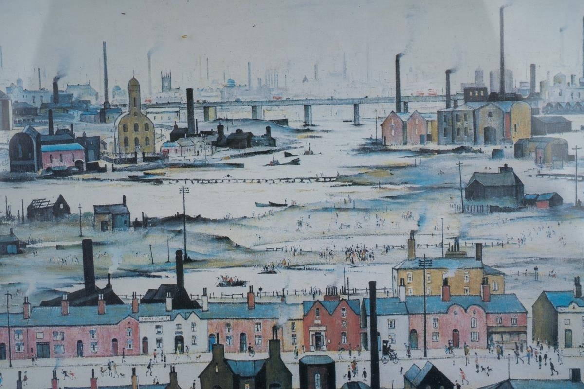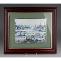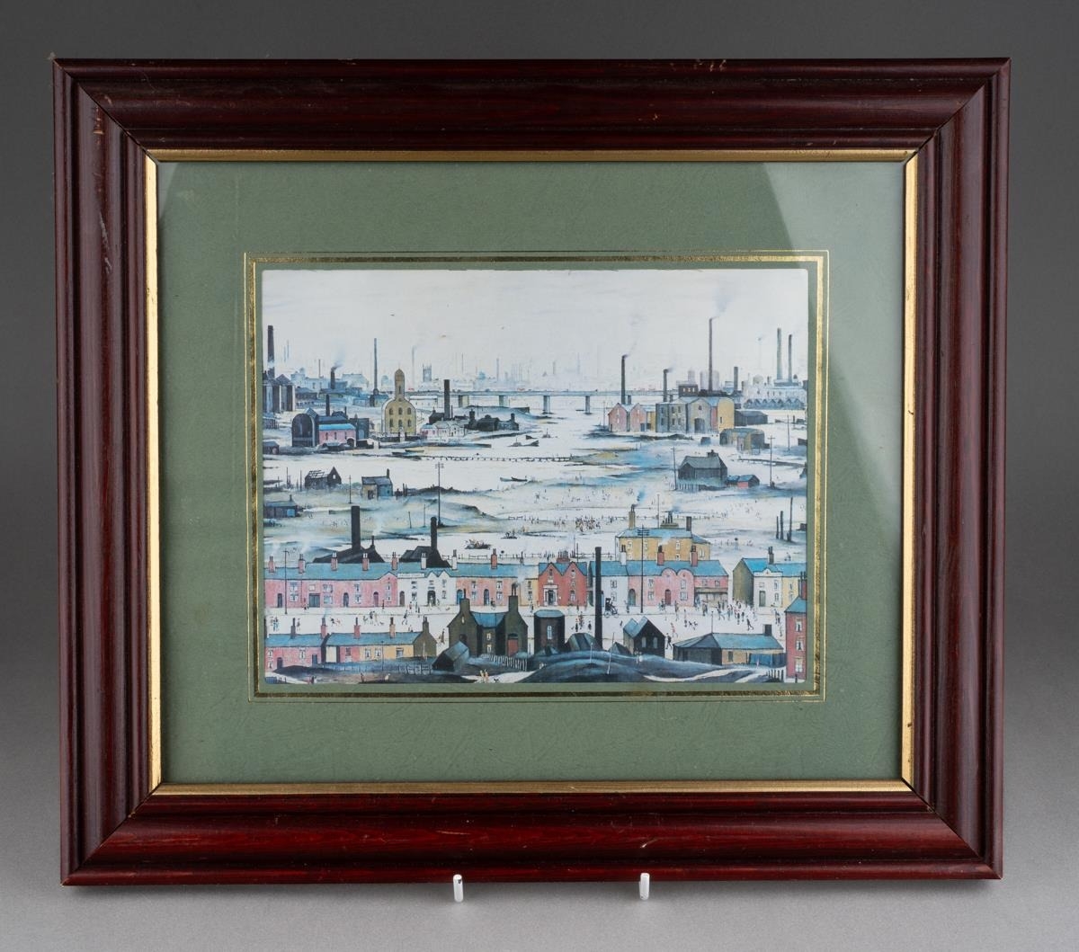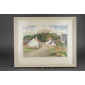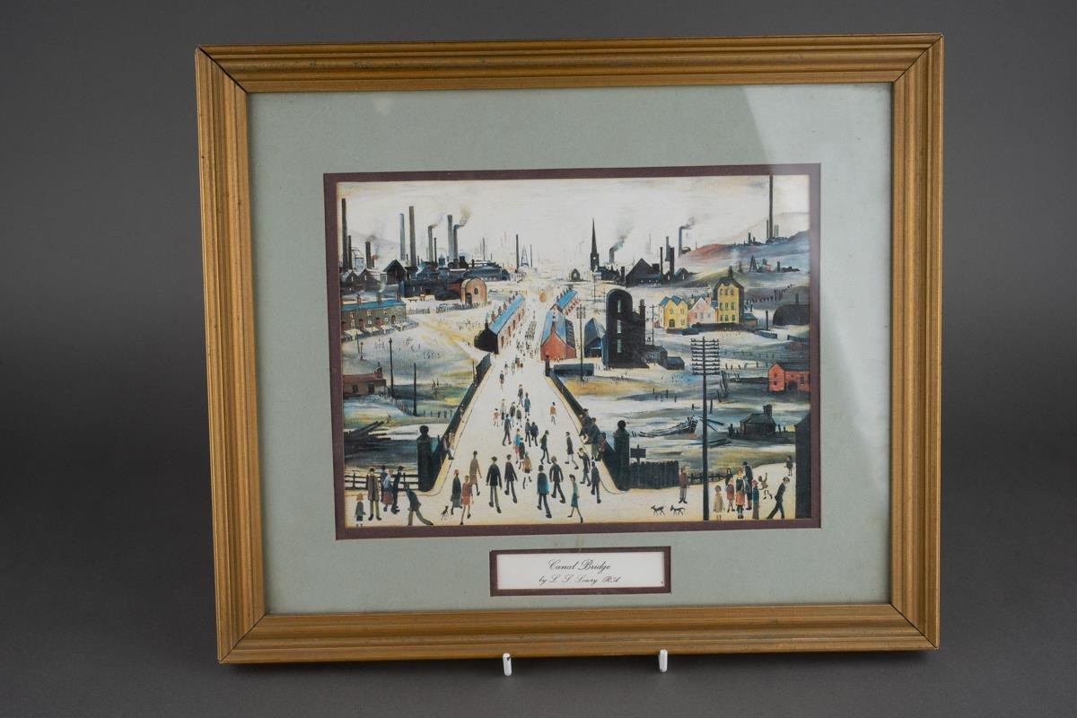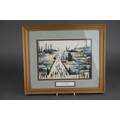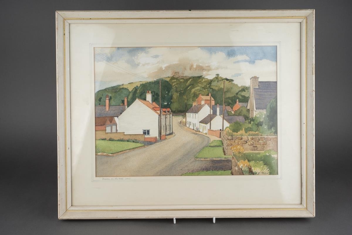 Watercolour of Breedon Hill and three prints including two Lawry ones and aMonet print of cats (4)