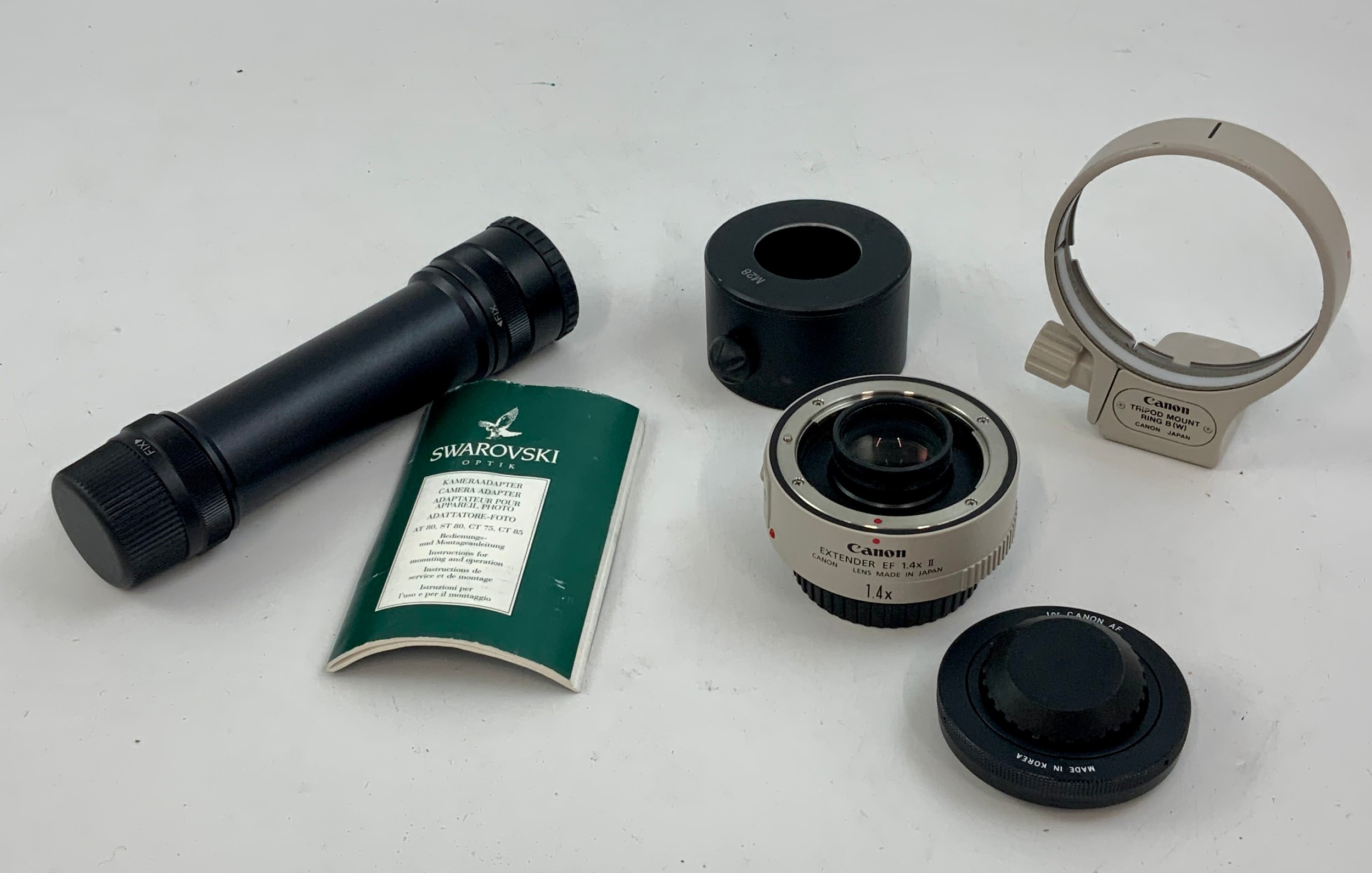 CAMERA ADAPTOR FOR SWAROVSKI SPOTTING SCOPE AND VARIOUS LENS FITTINGS INC. CANON RING MOUNT FOR TRIPOD, CANON LENS EXTENDER ETC.