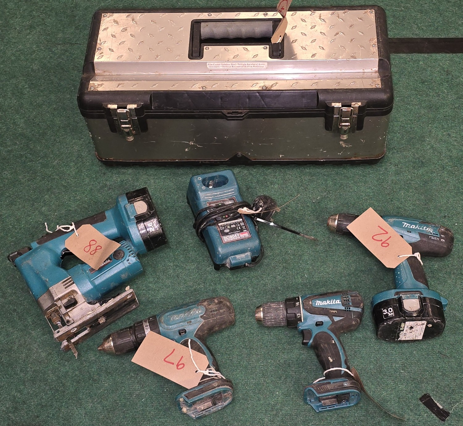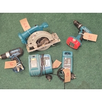 Collection of Makita power tools together with a toolbox (REF E24, E92, E90, E97, E88, E93).
