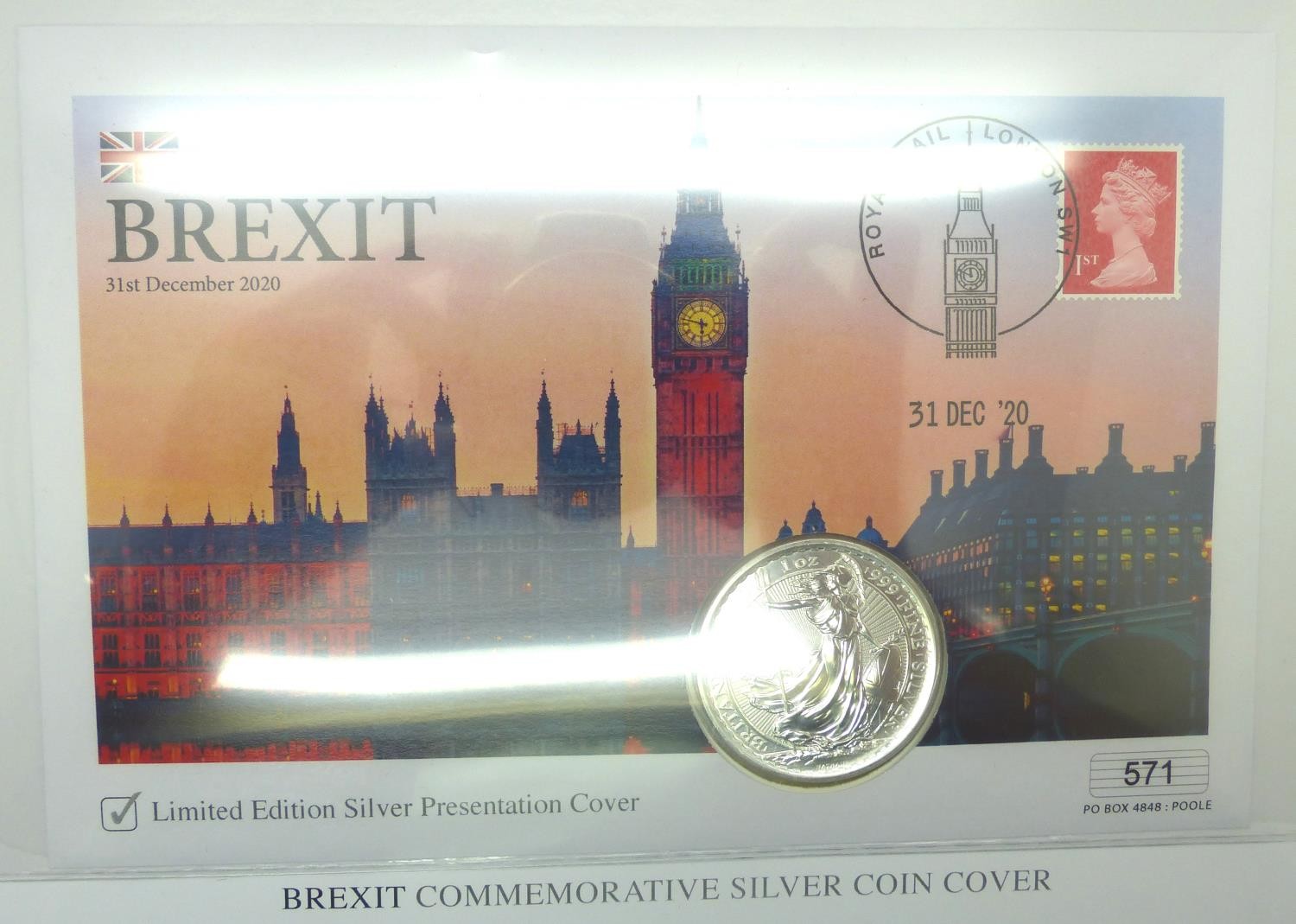 Limited edition Brexit Silver Bullion Britannia 2020, 1oz pure. P&P Group 0 (£5+VAT for the first lot and £1+VAT for subsequent lots)