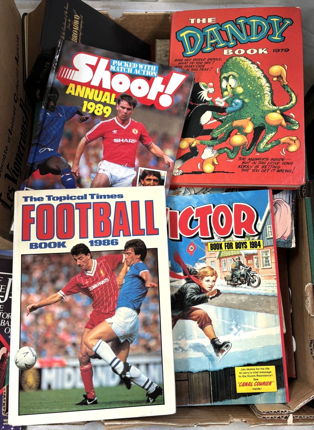 A collection of 1980's and early British annuals including Beano, Dandy, Whizzer etc, vintage board games etc; A Sinclair ZX Spectrum +2 originally boxed with a collection of games etc.