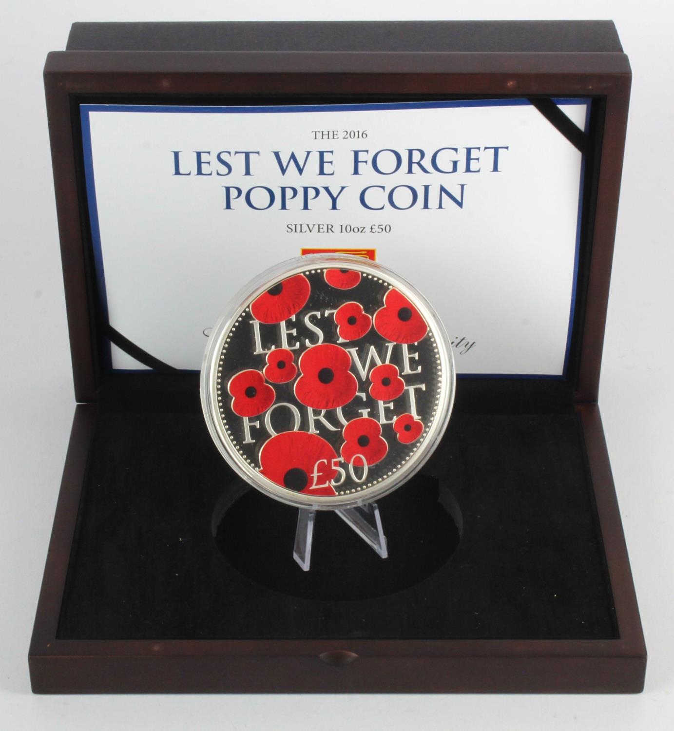 Jersey: The 2016 Lest we Forget Poppy Coin, 10oz (.999) Silver Proof £50, FDC cased with cert (only 100 issued)
