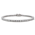 A 9K White Gold Lab-Grown Diamond Tennis Bracelet. 6ctw princess cut diamonds. 7 inches length. 7.87g total weight. LGBRPC9W060.