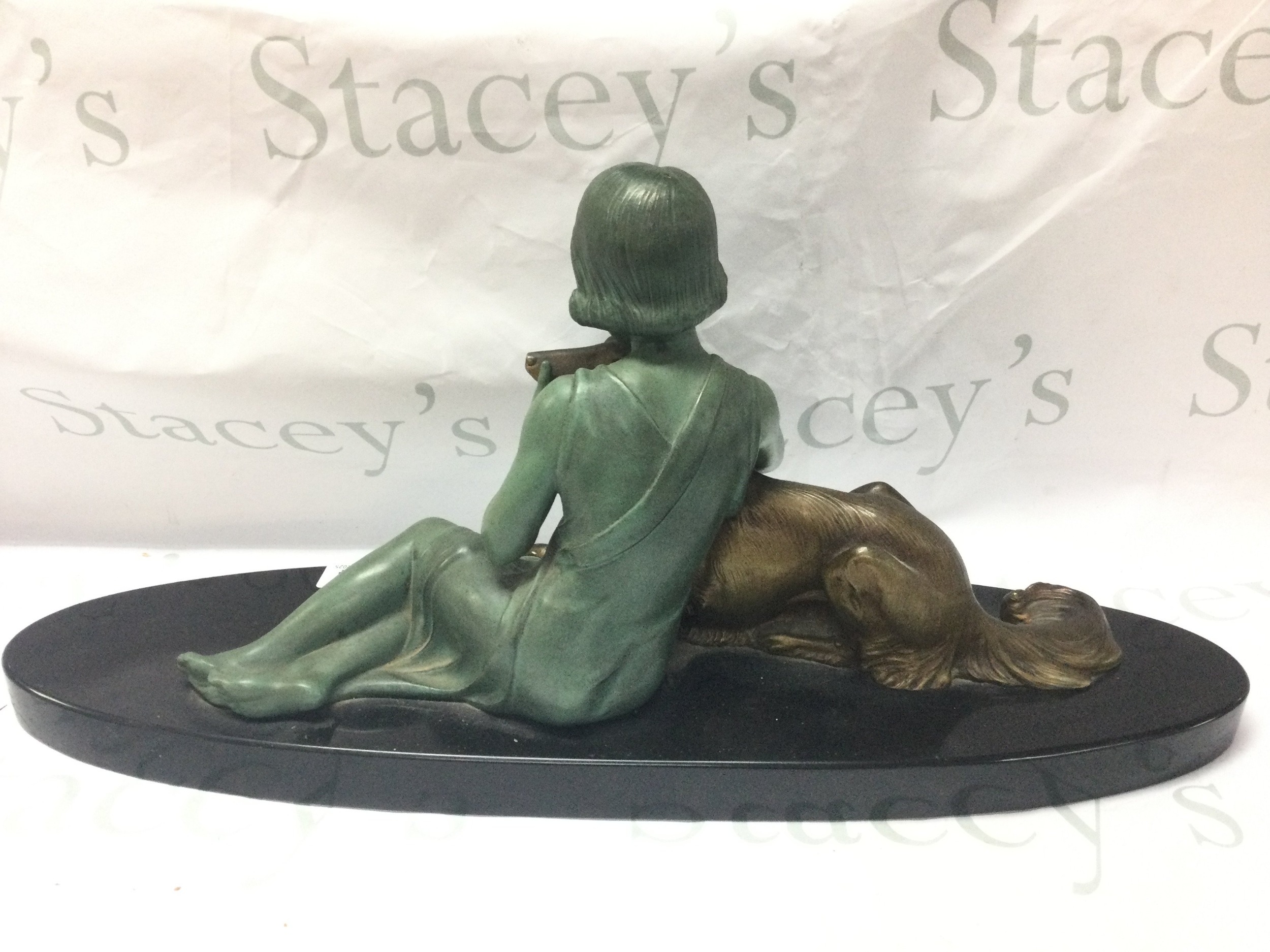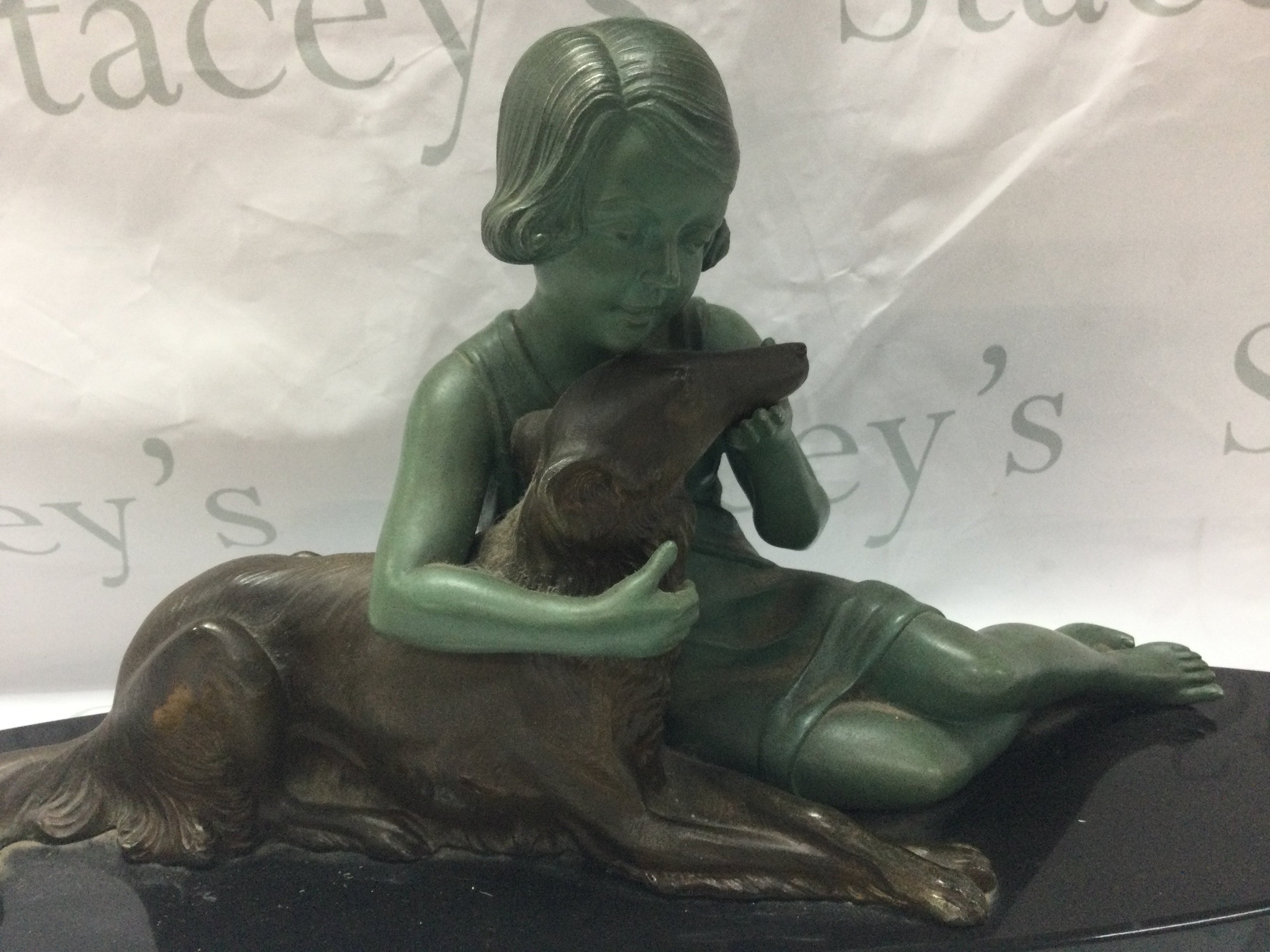 Armand Godard, bronzed French Art Deco Girl and Borzoi Dog c.1920-30s. 29cm tall 64cm wide approx