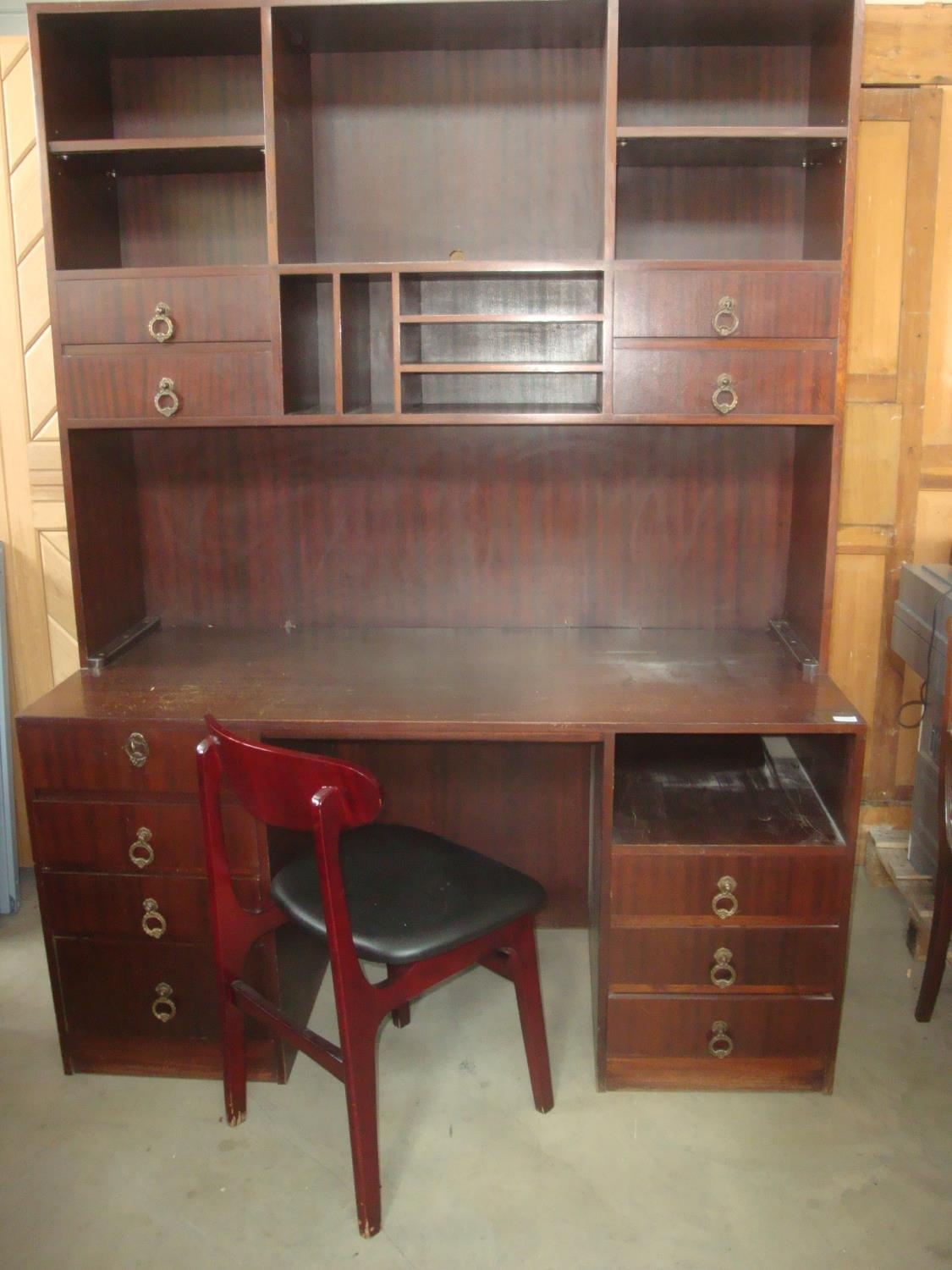 Vintage Mahogany Desk Unit with Top Bookcase and Matching Chair
